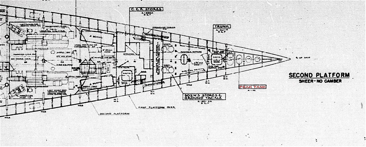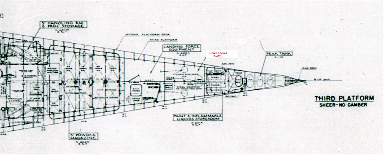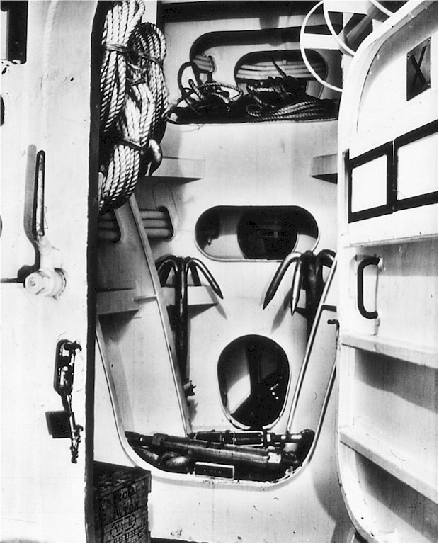 and Windlass room. Notice the 9 coathooks above, these can be seen