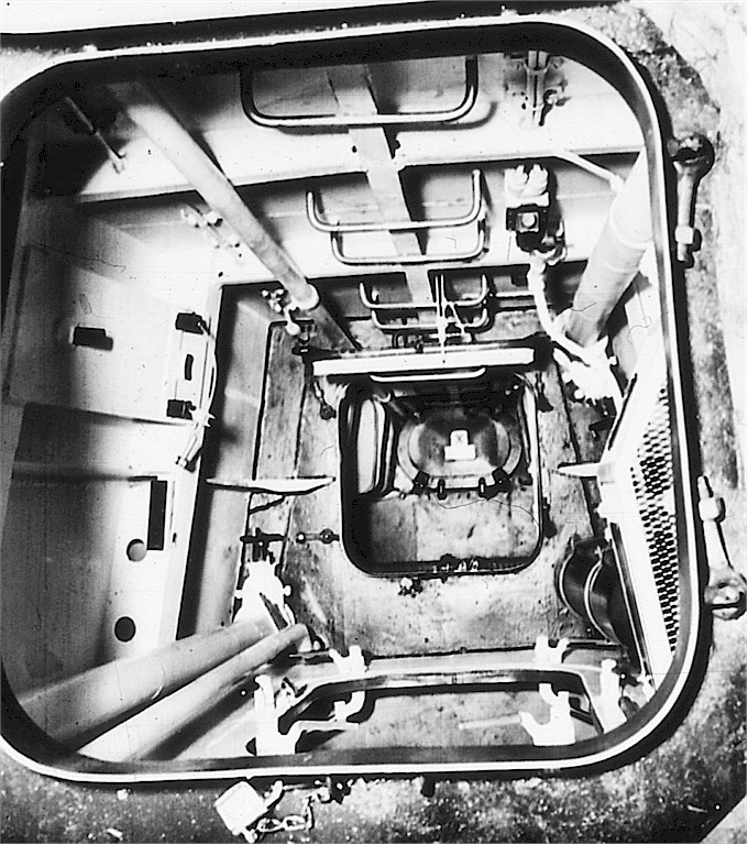 mount from the bow. Notice the 18" escape scuttle built into the hatch. When hatch is fully closed for bad weather or combat, all