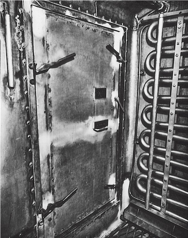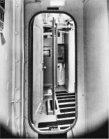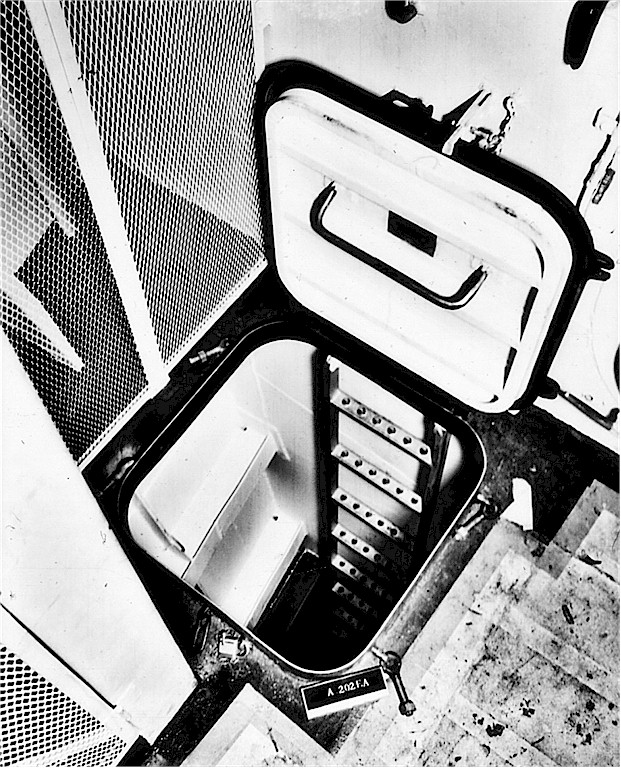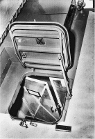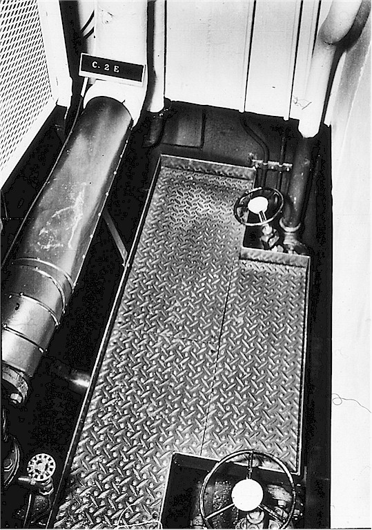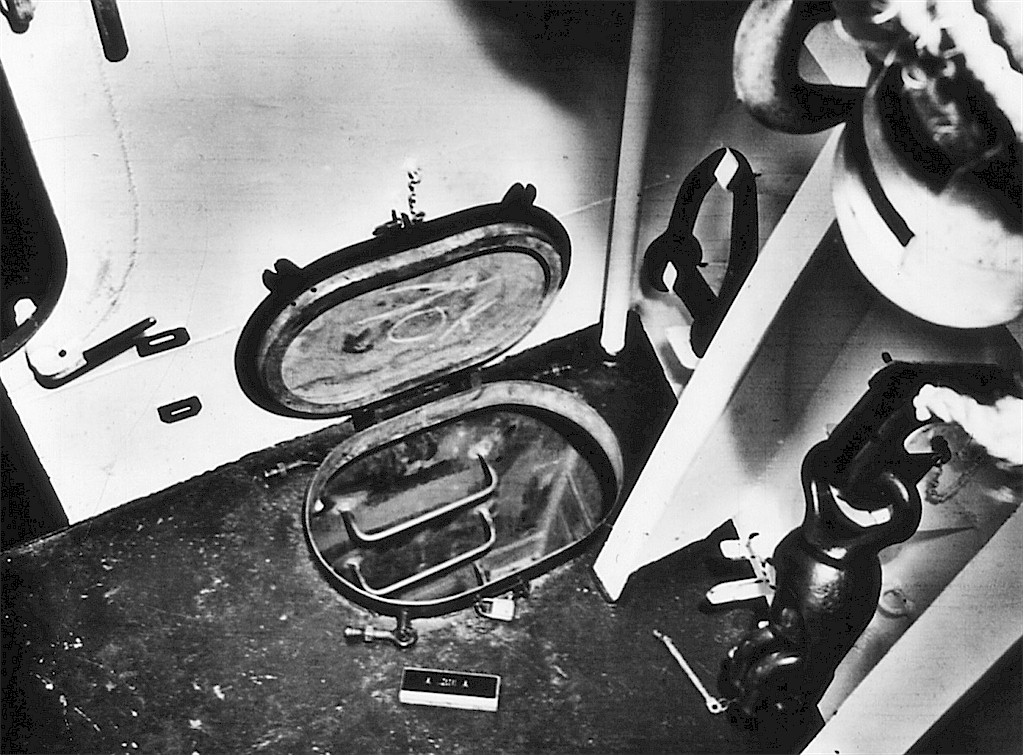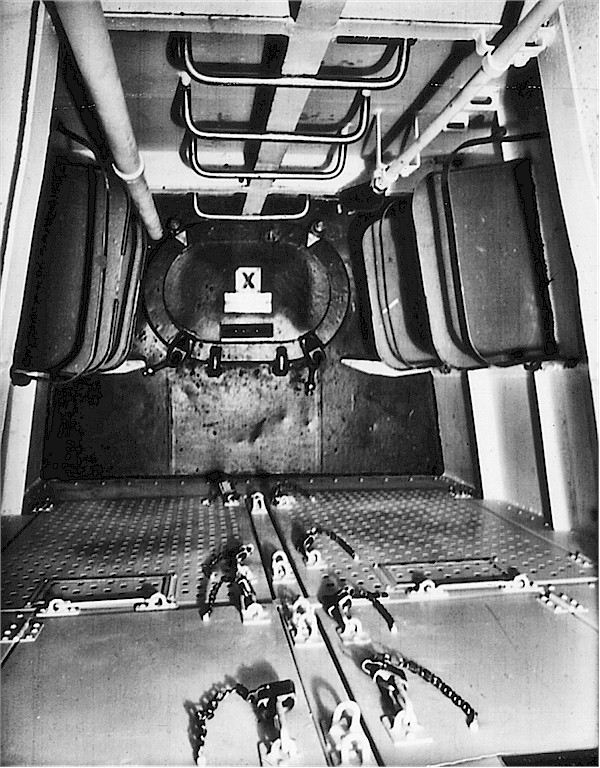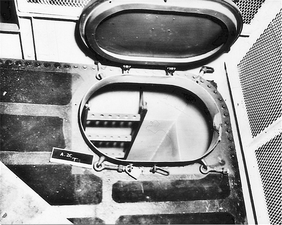 platform (2nd deck below the main deck) It is water tight and secured with 4 hand operated dogs (latches). Notice the paper