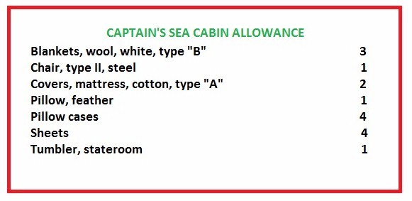 ship had private rooms, the Captain and the Executive Officer. All amenities included, toilet, sink,