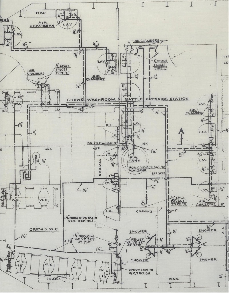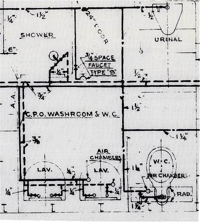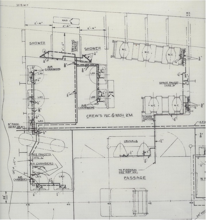 to 9 officers, the head consisted of 2 sinks (lavatory), 1