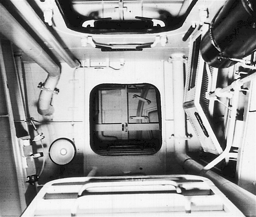 Typical thru deck hatch. This one goes from the 1st platform down to the 2nd