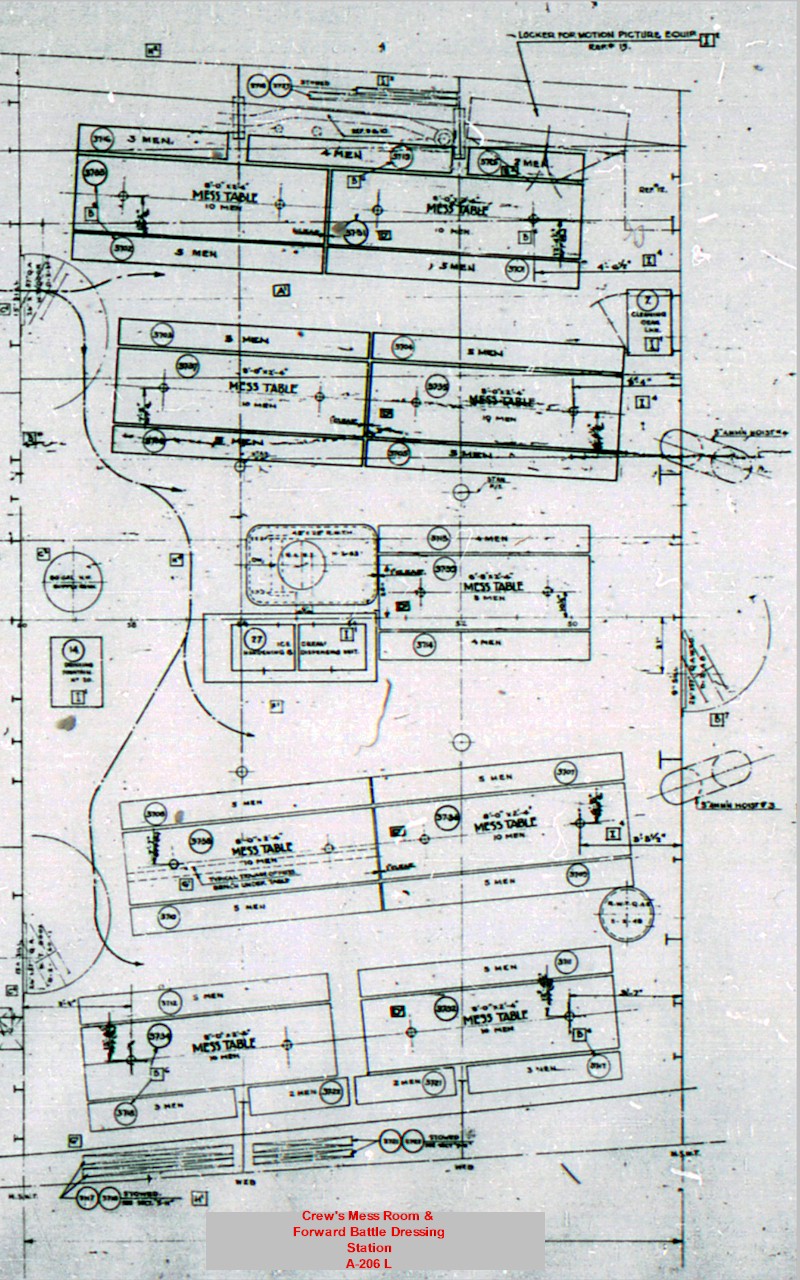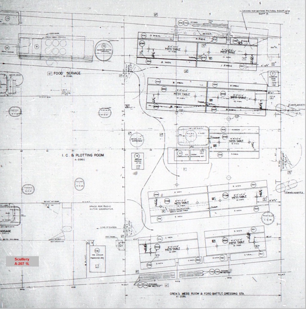 Looking to starb'd. The 692/710 class DD wardroom table had