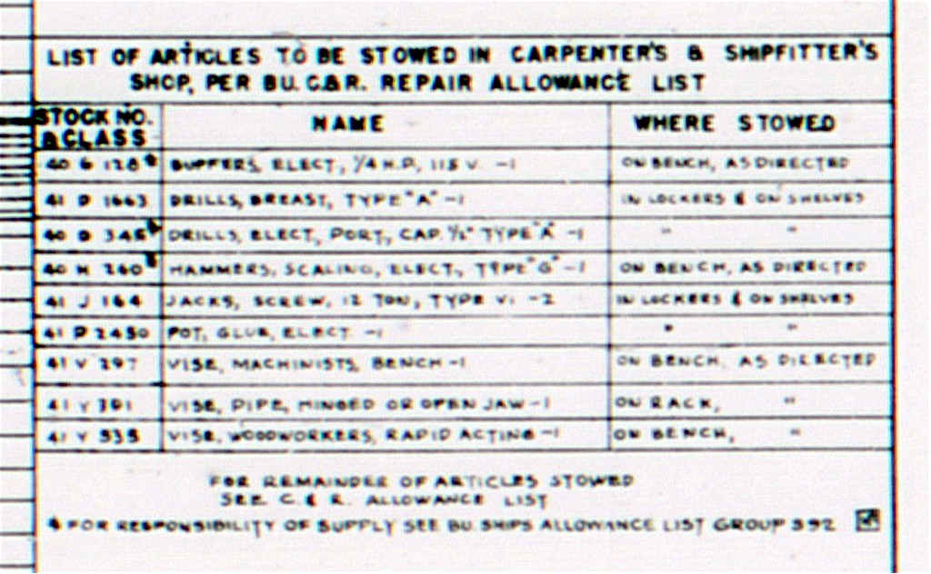 From the ship's Organization Manual for USS LAUB (DD-613) Ship's order #2, section 26 dated 24 October 1942