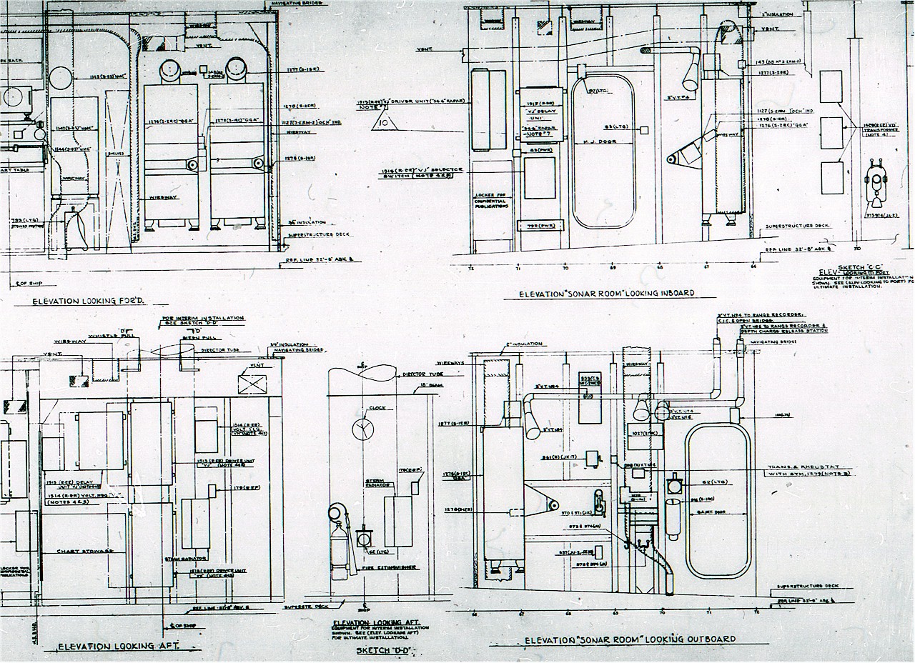 wardroom, chartroom, Divcom, etc. The 2 right photos