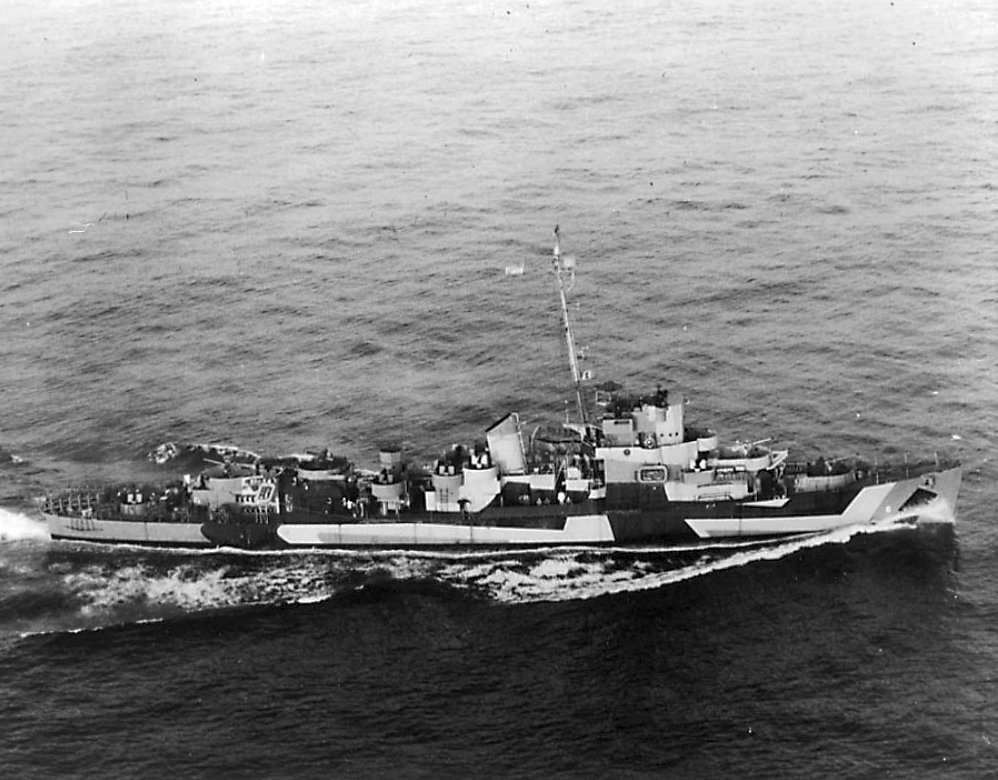 wearing Camouflage Measure 31, Design 3D and was photographed from a ZP-11 blimp. (U.S. Navy Photograph #80-G-280022, now in the collections of the National Archives) |