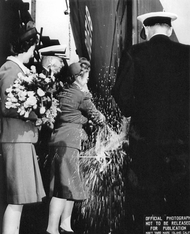 to left of Mrs. Boyer is assisting in the christening. (U.S. Navy Photo #DE-18-6535-42) |