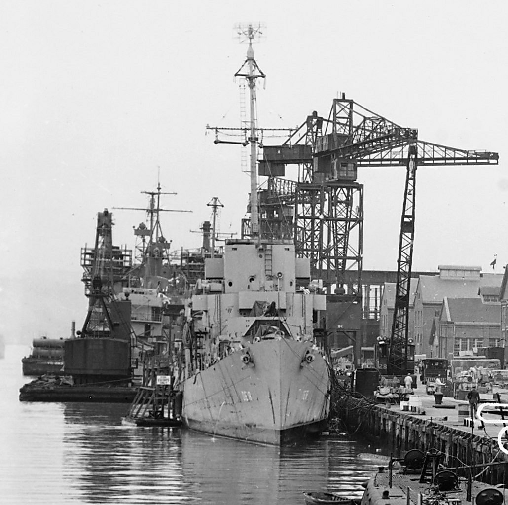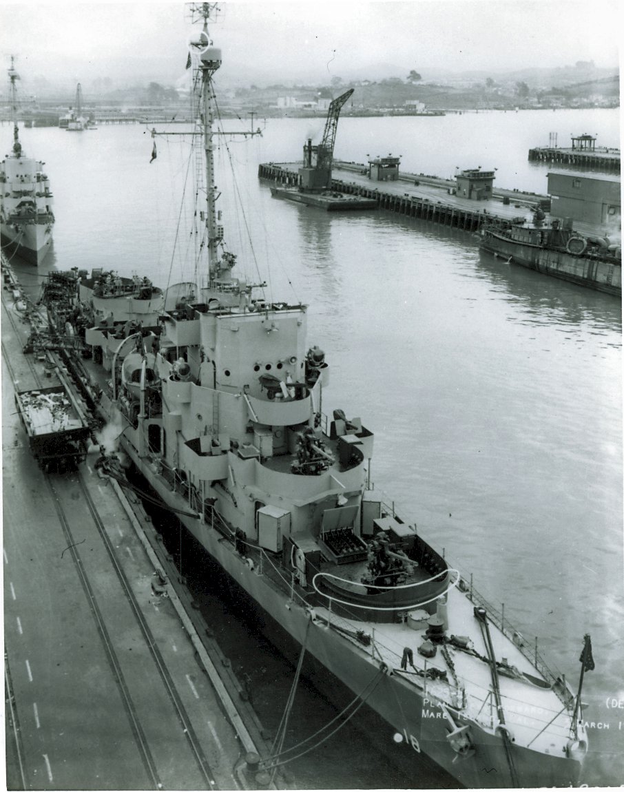 (DM 17) is seen of the next pier to the right. (<U.S. Navy Photo #DE-18-1625-45) | ||