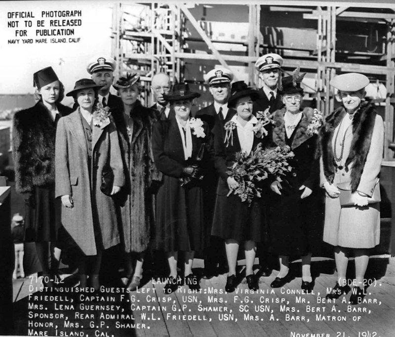128k | 21 November 1942: The distinguished guests at the launching of the future HMS Duff (BDE 20) at Mare Island. From left to right: Mrs. Virginia