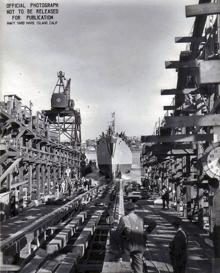 157k | 21 November 1942: Mare Island NSY - the future HMS Duff at the end of the building ways. (U.S. Navy photo #DE-20-7177-42) | ||