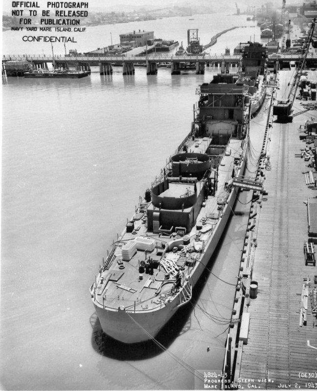 106k | 02 July 1943: Martin is seen at her outfitting berth at Mare Island Navy Yard. The USS Stadtfeld (DE 29) is forward of Martin. (U.S. Navy Photo #DE-29-4824-43) |