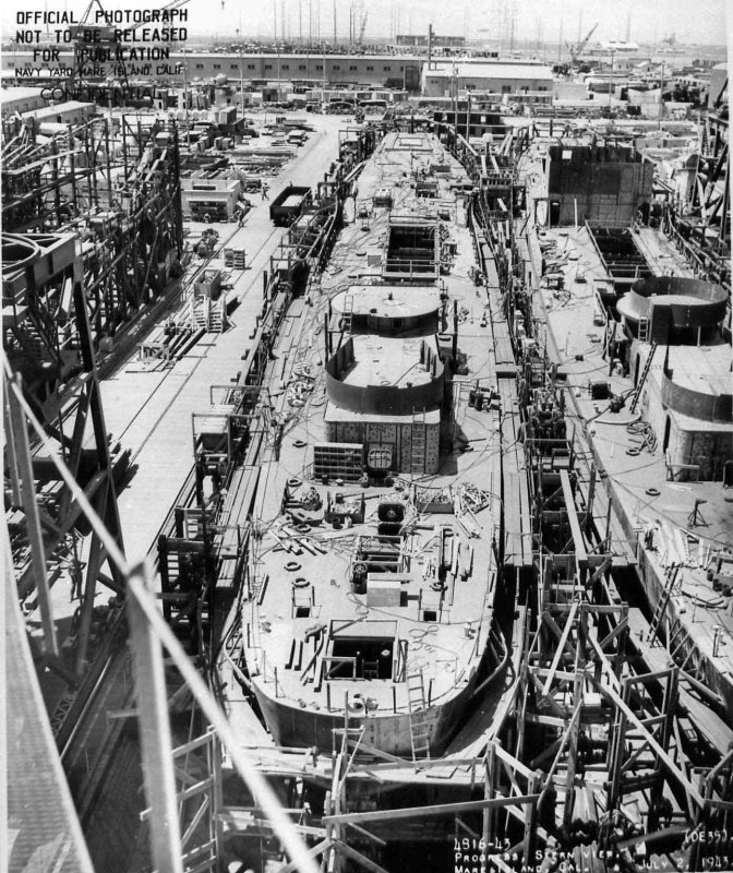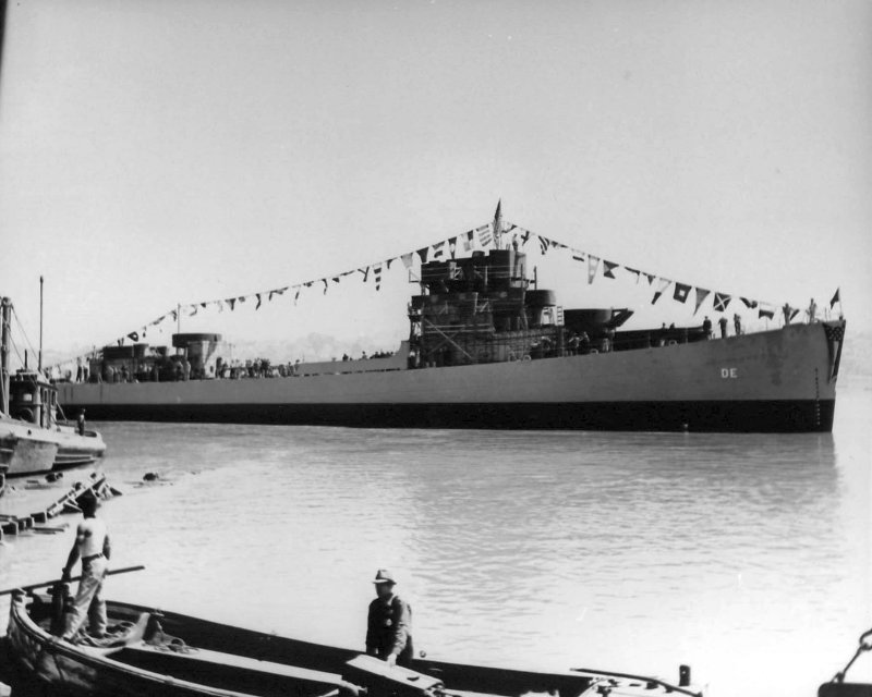 64k | 27 July 1943: Fair immediately after her launching at Mare Island Navy Yard. (U.S. Navy Photo #DE-35-5375-43) | ||