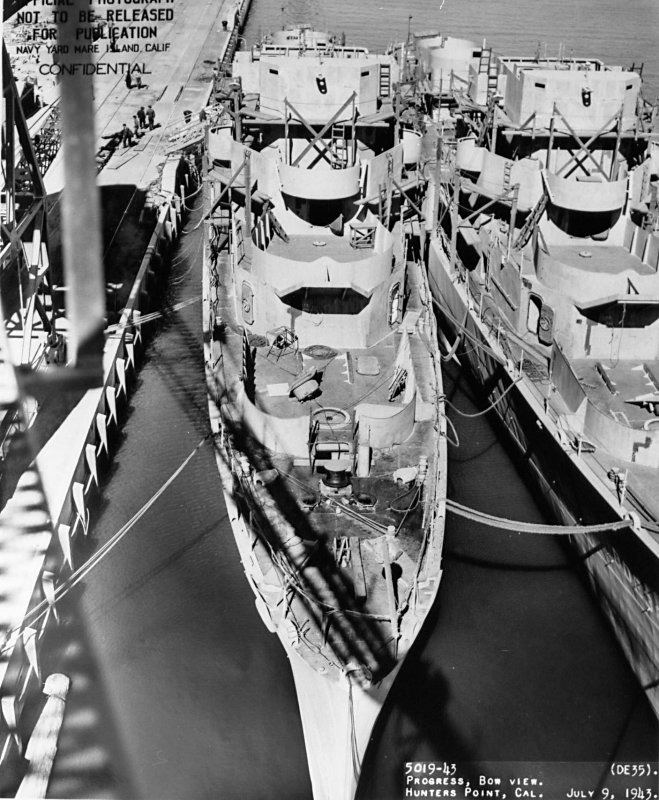156k | September 1943: The USS Fair (DE 35) at Hunters Point for additional outfitting in September 1943. (U.S. Navy Photo #DE-35-5019-43) | ||