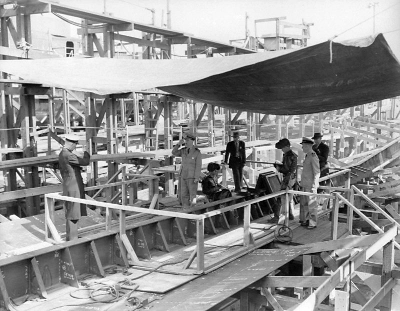 117k | 24 February 1943: The keel of USS Manlove (DE 36) is laid at Mare Island. I believe the officer of the left is Radm Friedell but not 100%