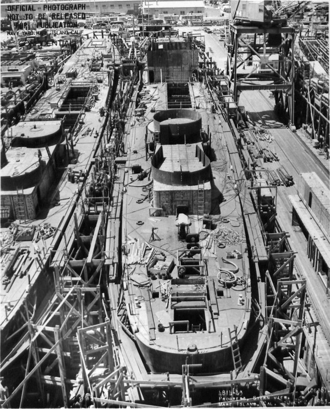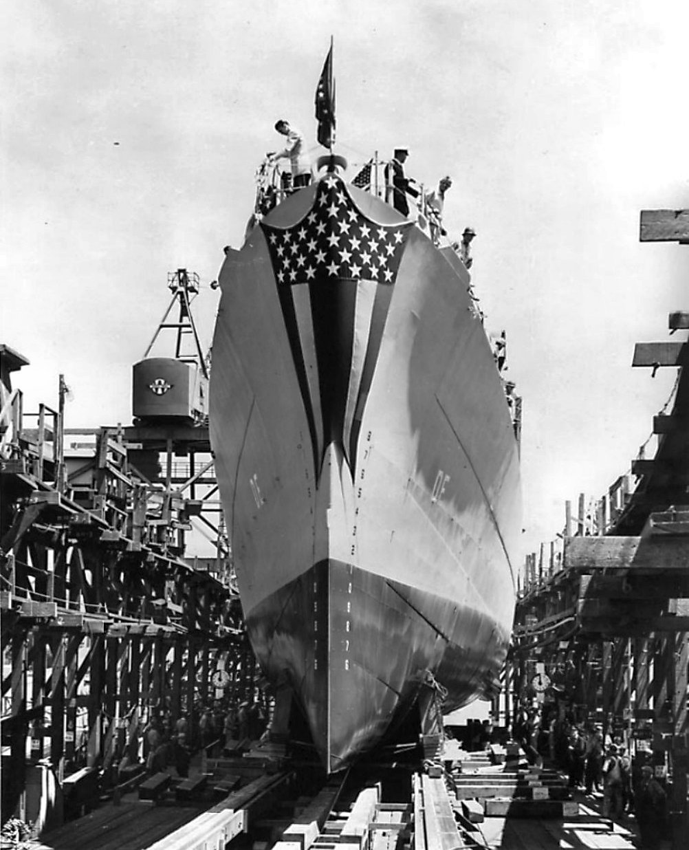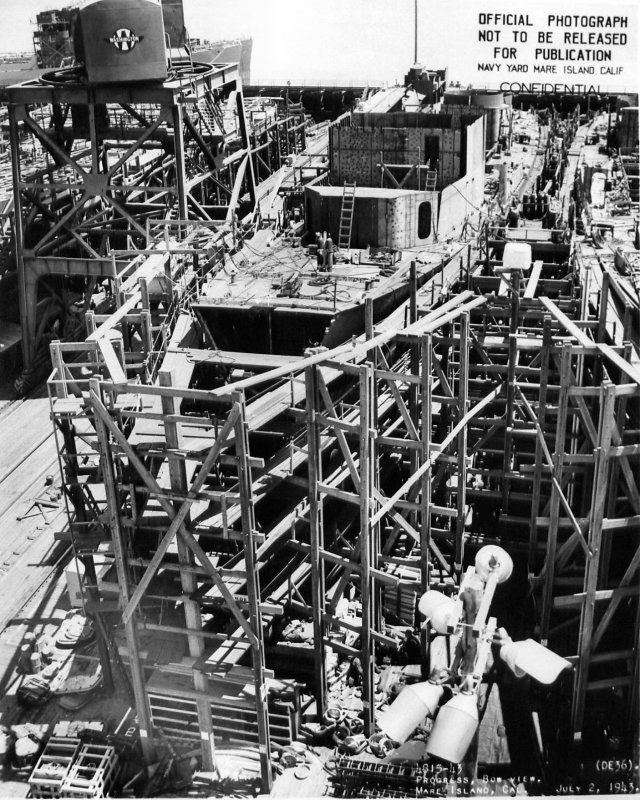 at Mare Island prior to her launching. (U.S. Navy Photo #DE-36-5426-43) | ||