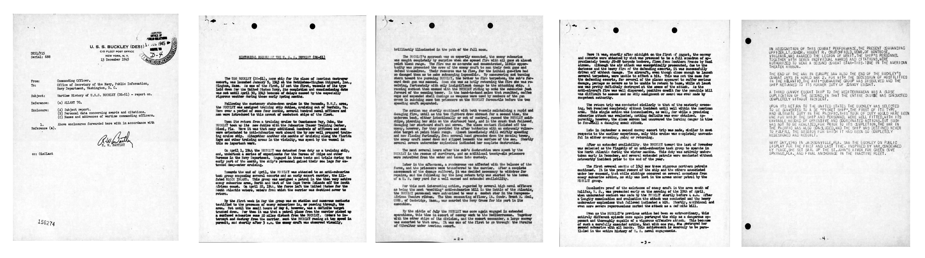 | View the official War History of USS Buckley as submitted by the ship at war's end. |