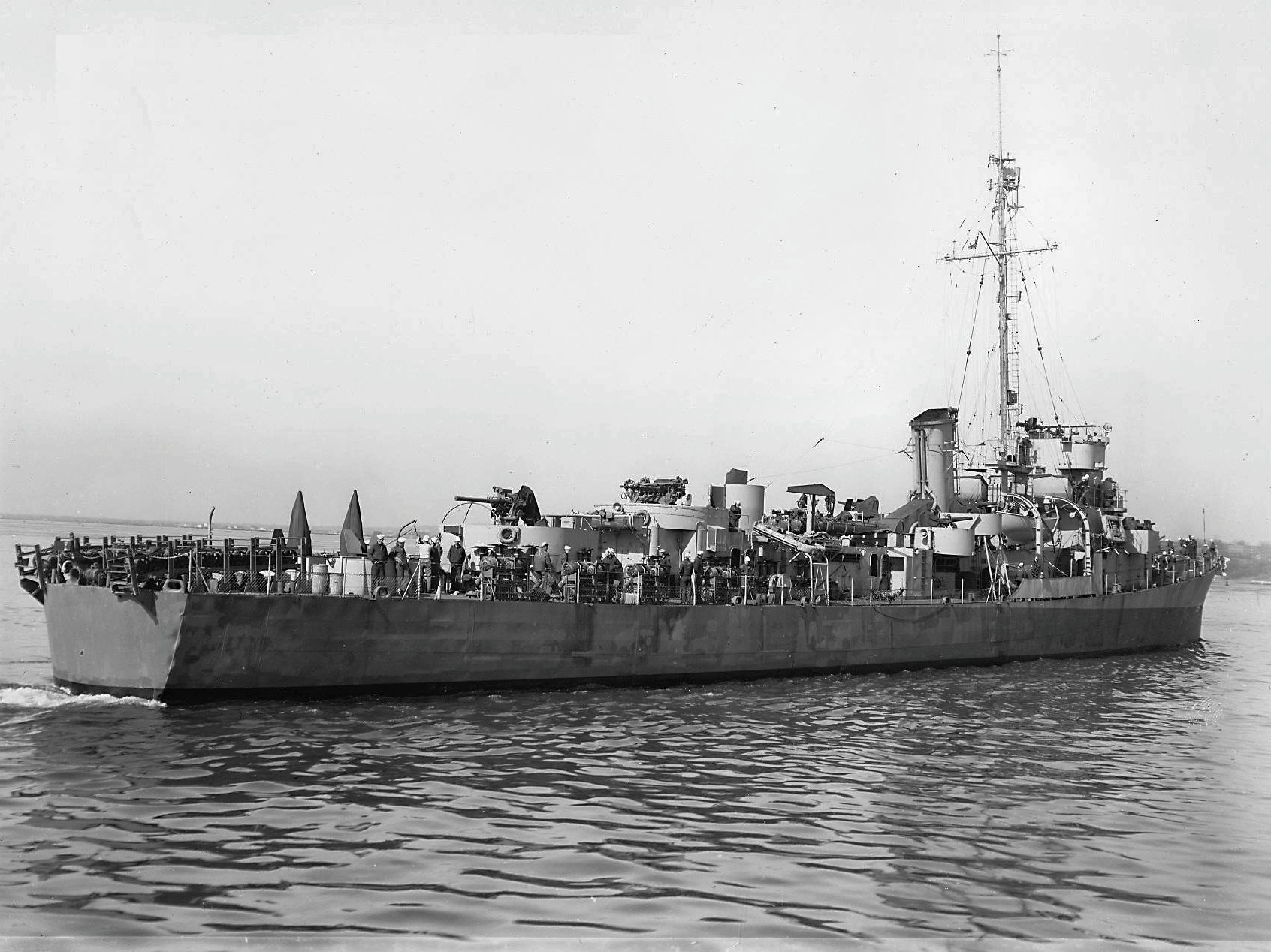 348k | 20 November 1943: off Brooklyn, N.Y. - A port beam view of Donnell taken in misty waters near the New York Navy Yard. (U.S. Navy photo #CP-DE-56 19-N-55732 from the National Archives and Records Administration, College Park, Md.; courtesy of Chris Wright) (N.Y. Navy Yard #F644C5199) |