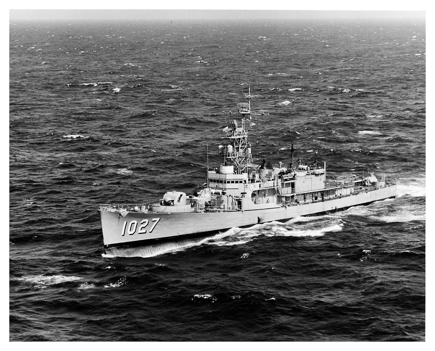 78k | 22 June 1967: the North Atlantic - John Willis (DE 1027) underway in the the North Atlantic while enroute to the Mediterranean for a NATO cruise (U.S. Naval Historical Center photo #NH 107510 by PHCS(PJ) W.A. Jackman from the Naval History and Heritage Command) | ||