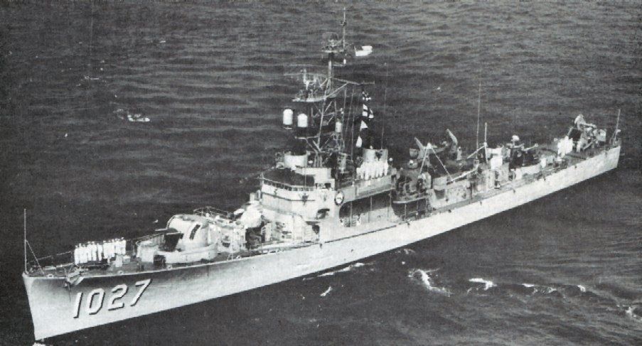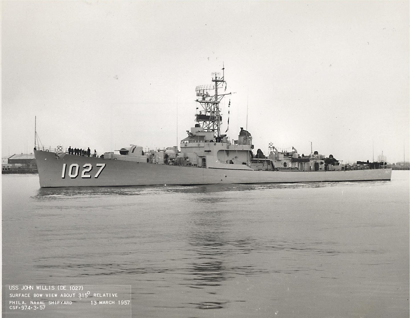 96k | circa 1959: USS John Willis (DE 1027) underway. (U.S. Navy Photo, from "Jane's Fighting Ships" 1960-61) |