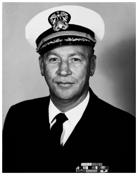 that would underscore his illustrious service to the Navy. In July 1916, after serving in battleships, cruisers, destroyers, and on staffs afloat, he took command of Division 8, Destroyer Force, the first group of American destroyers sent abroad during World War I. After crossing the storm and gale filled Atlantic, Comdr. Taussig was asked by the Commander in Chief of the Coasts of Ireland when he would be ready for sea. Taussig replied in the now famous words; "We are ready now, Sir." He received the Distinguished Service Medal for World War I service. After the war he continued to serve the Navy at home and abroad. In 1922 his ship, Cleveland, rendered assistance to the victims of an earthquake and tidal wave in Chile. He served at the Naval War College, from 1923 to 1926. He also saw duty in the Bureau of Navigation, as Assistant Chief of Naval Operations, and as Commandant, 5th Naval District, in addition to commanding a battleship division and cruiser scouting force. Vice Admiral Taussig retired in 1941 but was recalled to active duty in 1943 to serve in the office of the Secretary of the Navy until 01 June 1947, only a few months before his death 29 October 1947. USS Joseph K. Taussig (DE 1030) (1957-1972) was the first ship to be named in his honor. (U.S. Navy photo from the Naval History and Heritage Command) |
