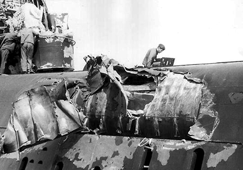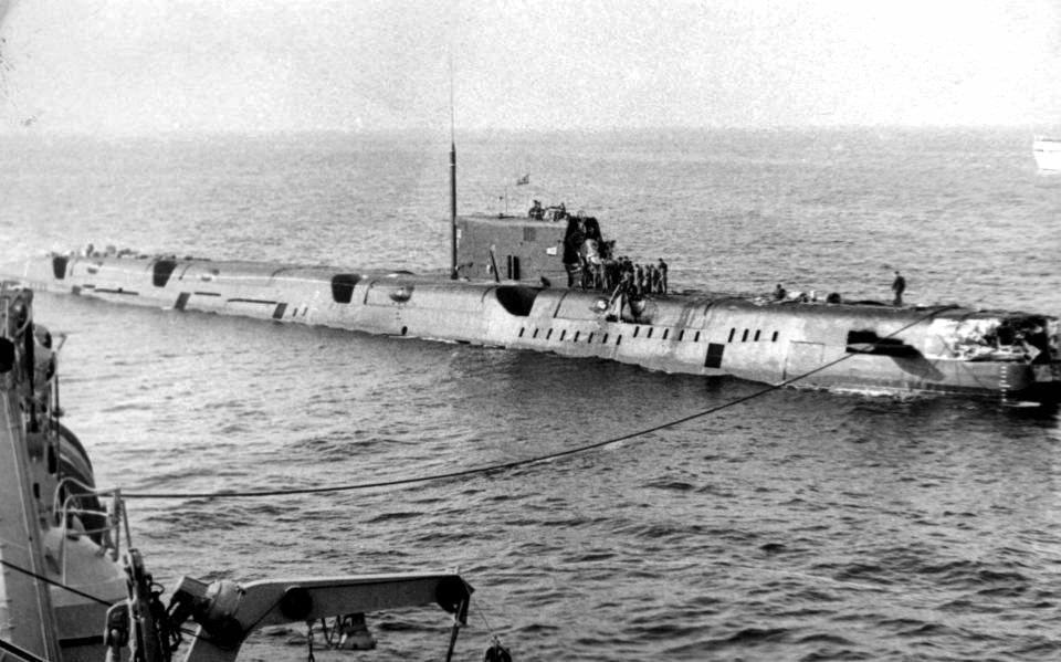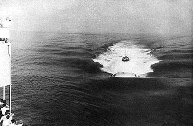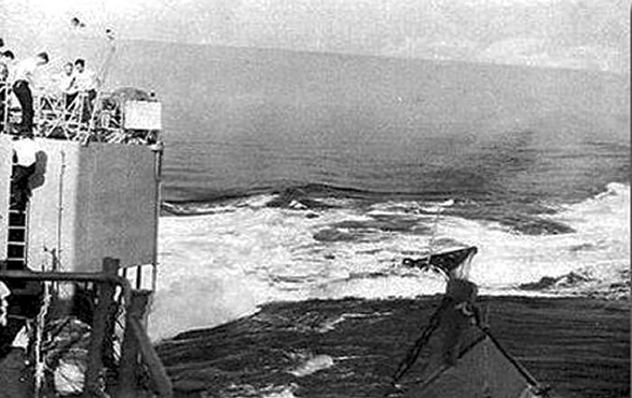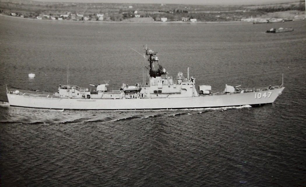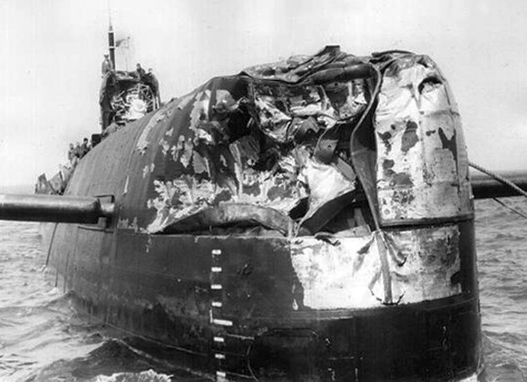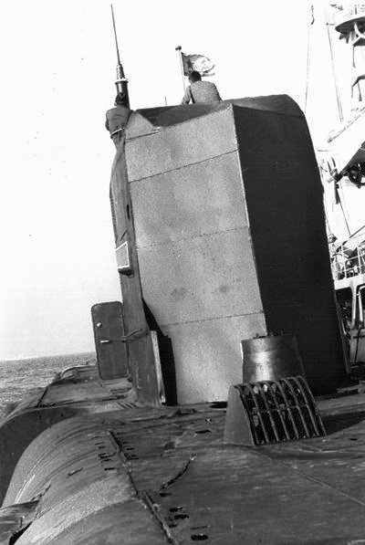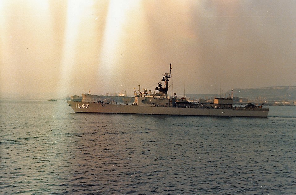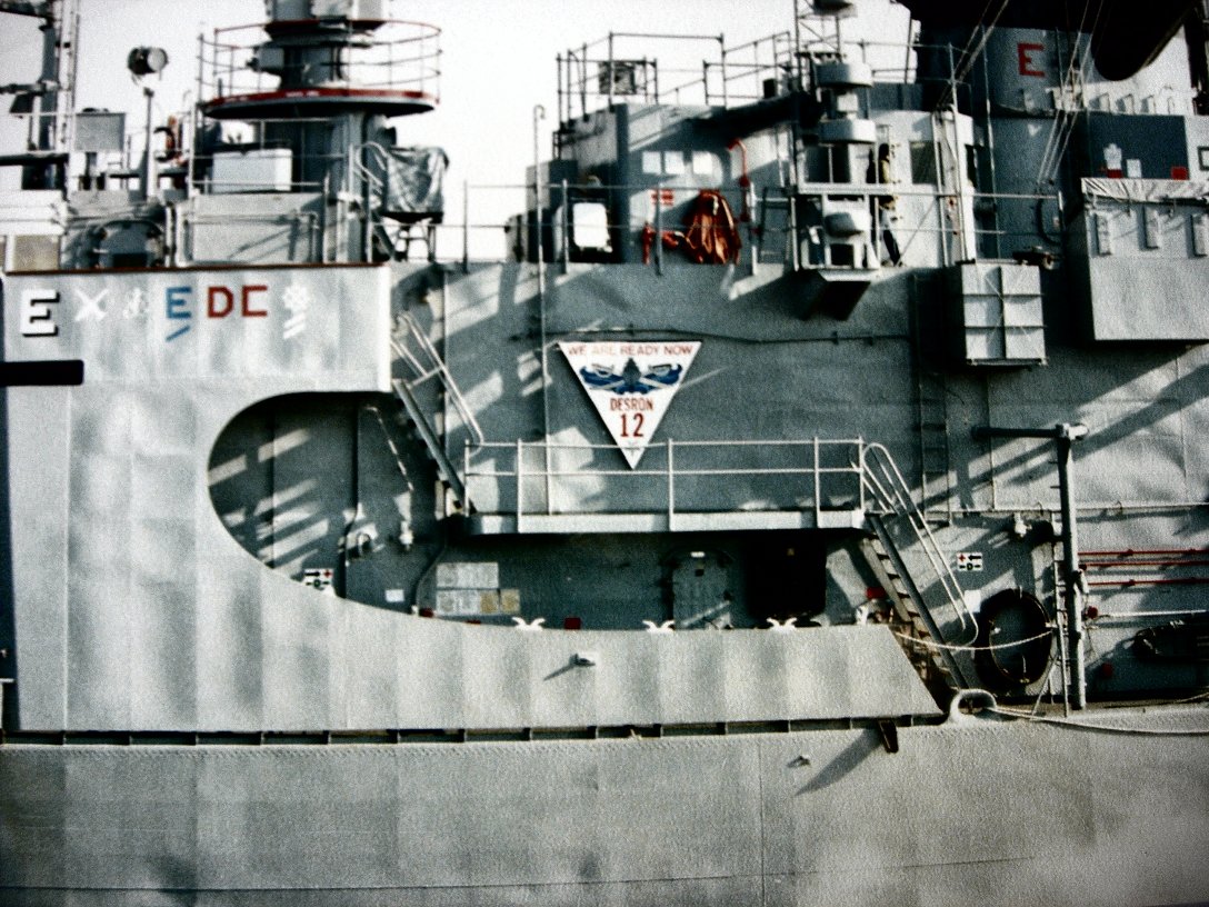 40kOn 28 August 1976, while operating in company with USS Moinester (FF 1097) in the Ionian Sea at 36°2'N and 20°36'E near Greece, Voge saw the periscope of the Soviet Echo II-class missile submarine K-22 shadowing Moinester, and apparently unaware of Voge's presence. For about two hours Voge's crew kept K-22 under surveillance, even to the point of getting a number of photos of the periscope. K-22's skipper apparently lost track of Moinester a number of times. Soon the sub skipper noticed Voge for the first time and realized he was about to collide with her. Too late he ordered an emergency dive, and seconds later K-22's bow and sail rammed Voge's port quarter. K-22 had damage to missile container No. 1, extension devices and the fin structure, and went to Kithira in the Aegean Sea for repairs. Voge was damaged at the stern, and had to be towed to Crete. She sustained serious structural damage that necessitated drydocking at Toulon, France. On 07 November, Voge successfully completed post-drydock sea trials, and then headed for Rota for turnover. On 20 November, she stood out of Rota bound for Mayport. She reentered her home port on 02 December 1976. (Eugene was the Antiaircraft / Guided Missiles Operations Center Commander aboard the Soviet Kashin Class guided missile destroyer Krasny Krim and an amateur photographer.) 0602104721a - 0602104721b - 0602104721c - 0602104721d - 0602104721e 0602104721f - 0602104721g - 0602104721h - 0602104721i - 0602104721j |