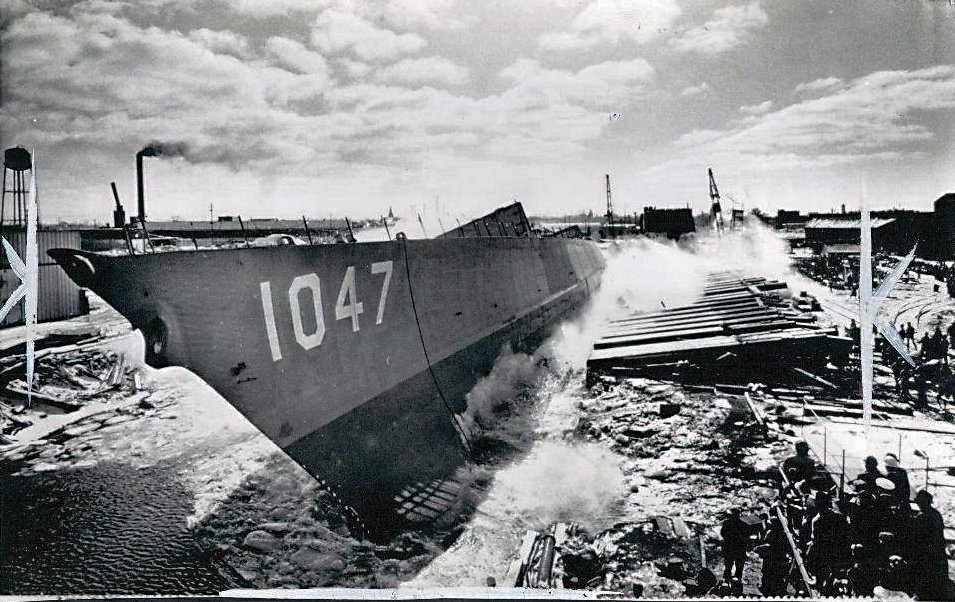 171k | 04 February 1965: Bay City, Mi. - Voge being side-launched at Defoe Shipbuilding Co. (wire service photo dated 08 December 1965) |