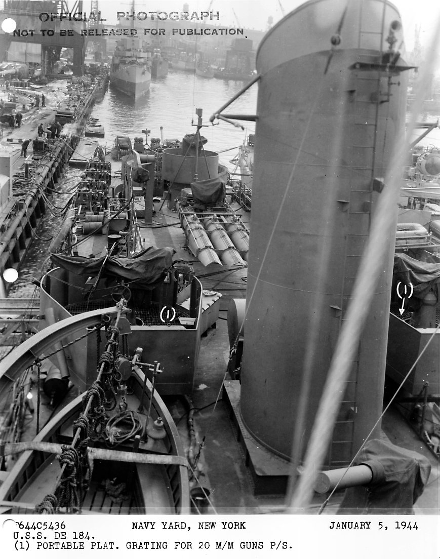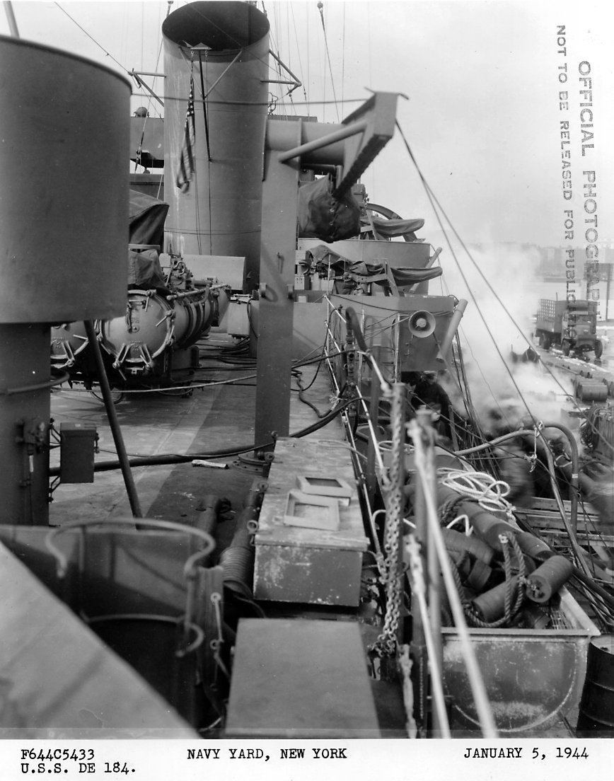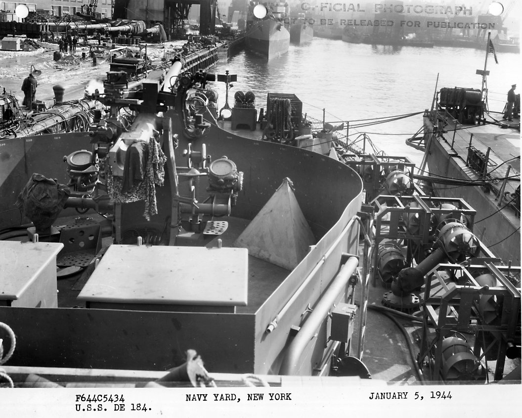 178k | 26 June 1945: Mare Island Navy Yard, Vallejo, Cal. - Forward plan view of USS Wesson (DE 184) at Mare Island. She was in overhaul at the