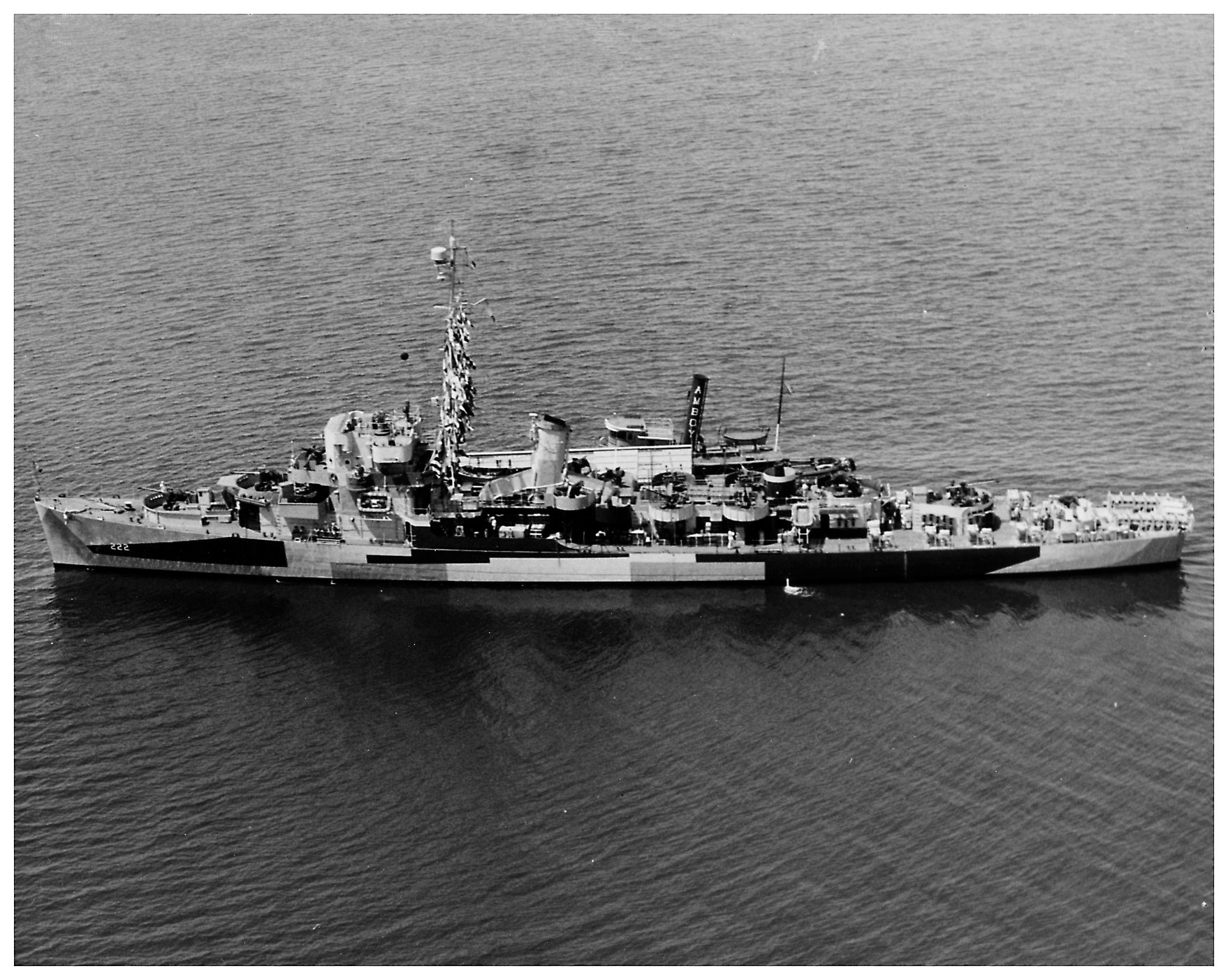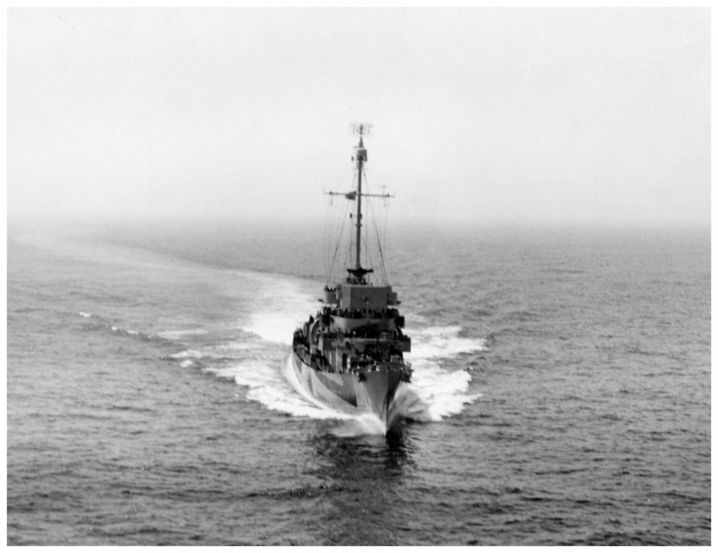 166k | 23 July 1944: the Atlantic Ocean - Taken from a ZP-11 blimp, Fowler is underway from Earle, N.J. to Casco Bay, Maine where she'll undergo refresher training
