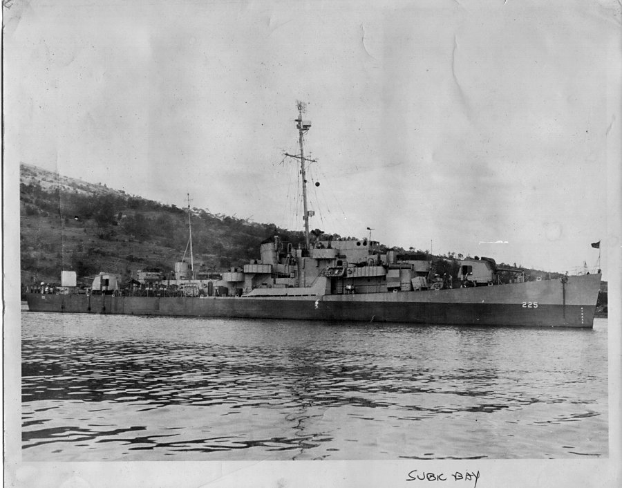 360k | 1946: San Francisco Bay - USS Day (DE 225) with the Oakland - San Francisco Bridge in the background. (U.S. Navy Photo from the collections of the Vallejo Naval & Historical Museum) |