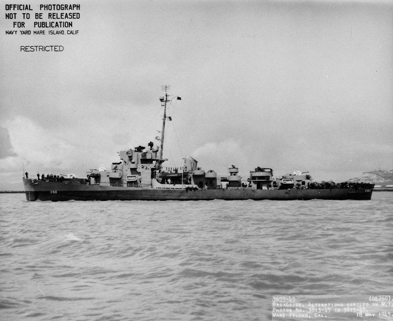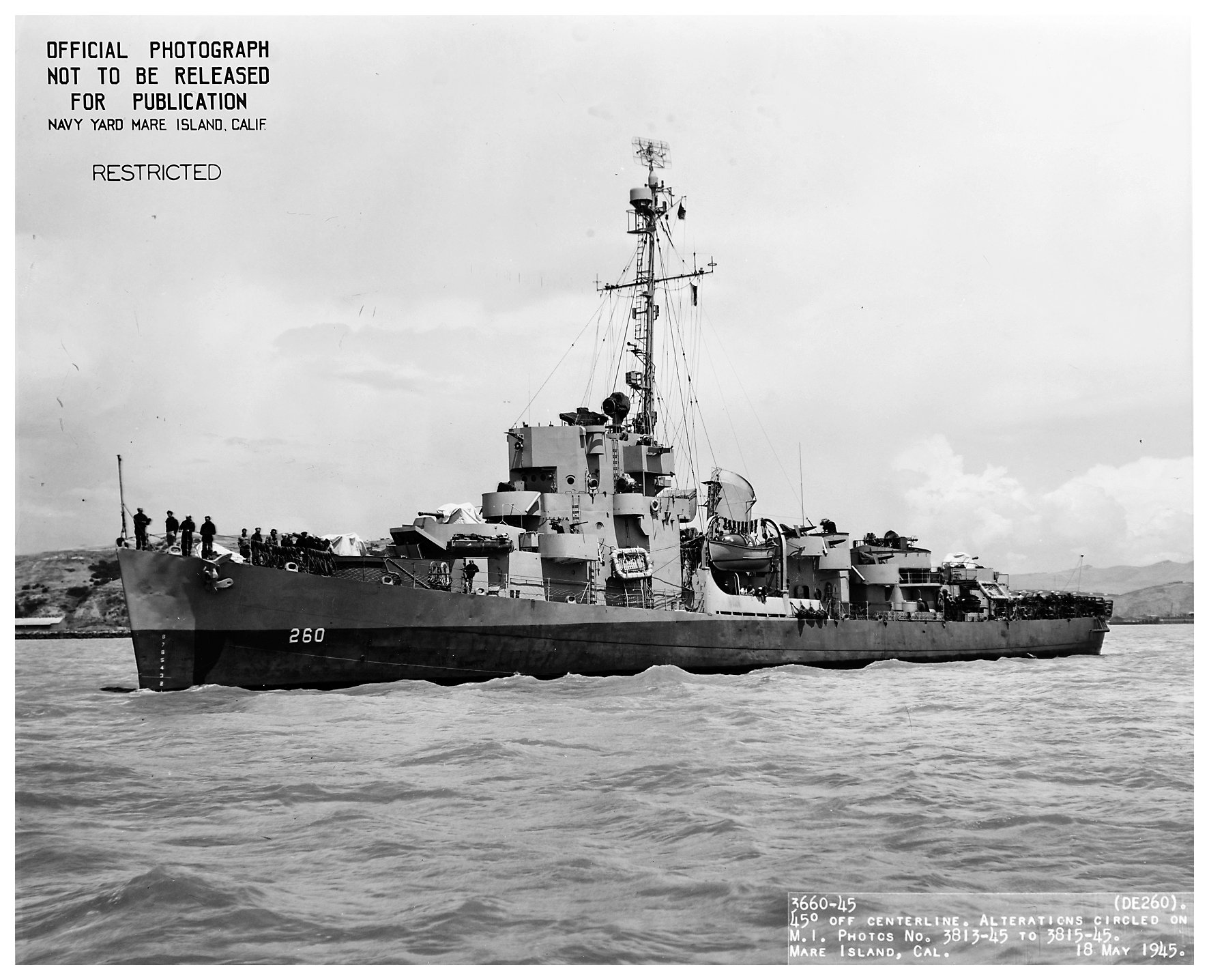 59k | 18 May 1945: USS Cabana (DE 260) off Mare Island Navy Yard. (U.S. Navy Photo) |