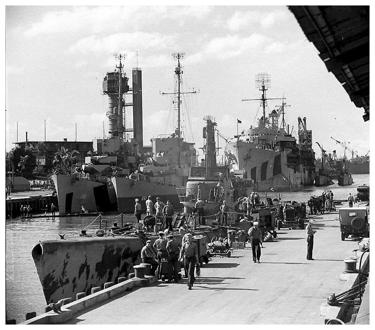 268k | 02 January 1945: Pearl Harbor, Hi. - View of Magazine Loch at Pearl Harbor. USS Dionne (DE 261) & USS McClelland
