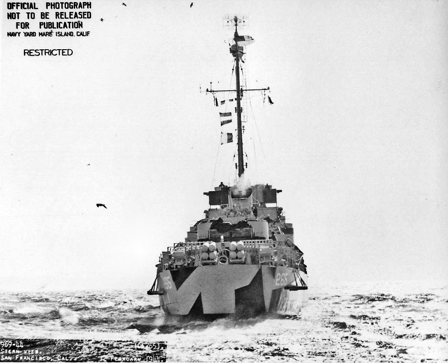 116k | 12 February 1944: stern view, off San Francisco. (U.S. Navy Photo #DE-265-969-44) | ||