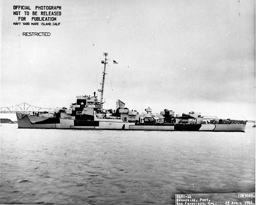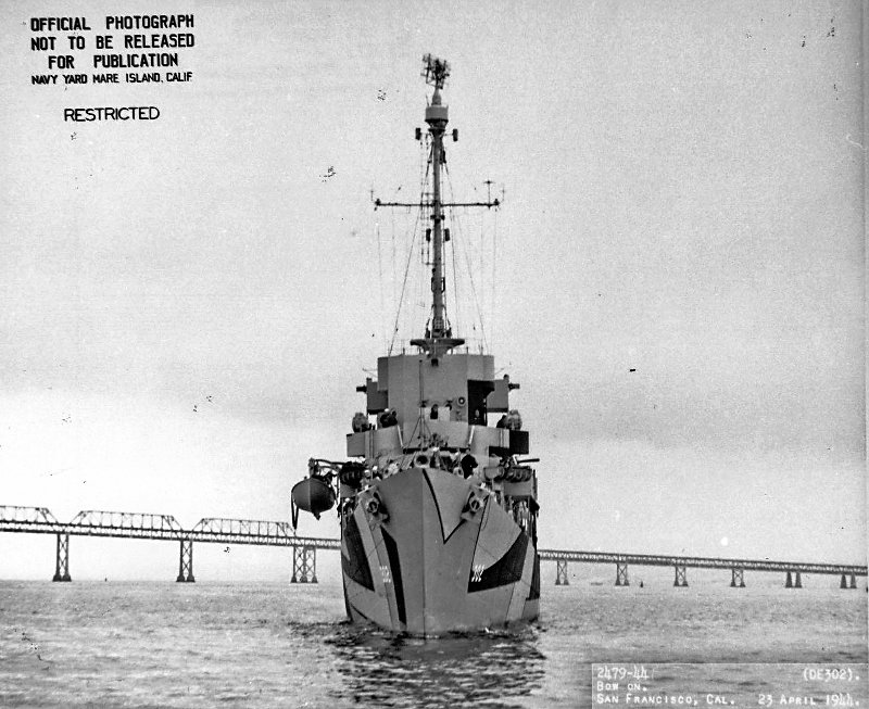 113k | 23 April 1944: Bow on view of Lyman off San Francisco. (U.S. Navy photo #DE-302-2479-44) |