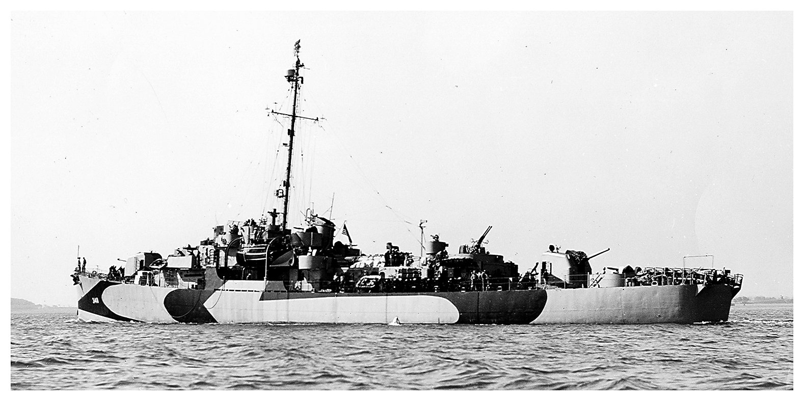 392k | 08 June 1944: Boston, Mass. - USS O'Flaherty (DE 340) is seen wearing MS31/22D camouflage scheme. She got underway that morning for Broad Sound to calibrate