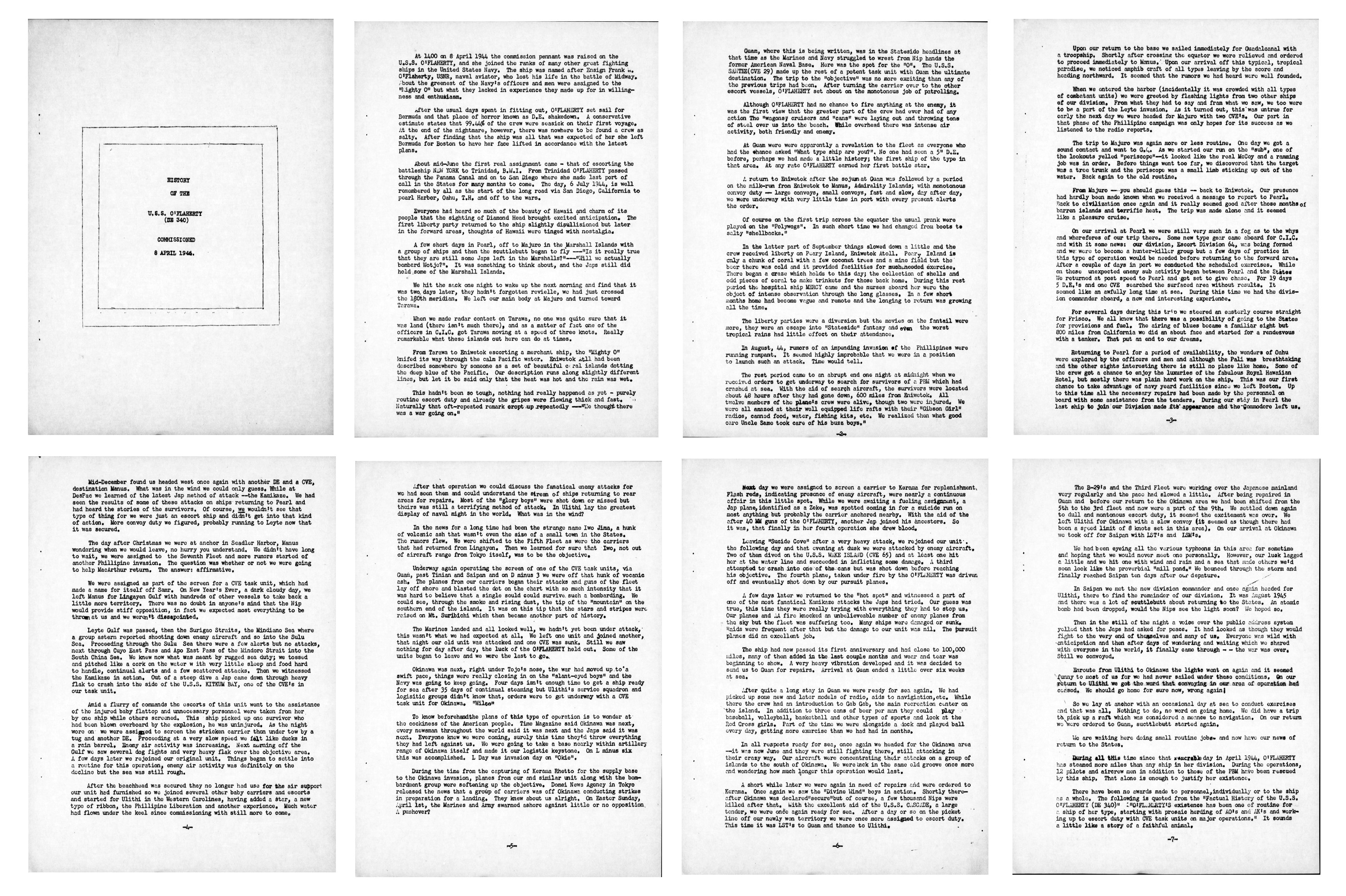 | View the USS O'Flaherty (DE 340) DANFS history entry located on the Naval History and Heritage Command web site. |