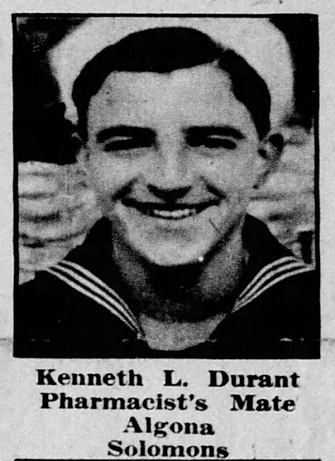 71k | Kenneth William Durant, the son of Solomon Raymond and Ida Minnie (Redemske) Durant, was born on 02 March 1919 in Algona, Kossuth County, Iowa. He enlisted in the Navy on