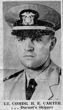 30k | 16 November 1956: The Vallejo Times Herald - A photo of Lcdr Harry E. Carter, new commanding officer of USS Durant (DER 389) which appeared in today’s issue of the paper. (U.S. Navy photo #DER 389 32278-11-56) | Darryl Baker PNCM, USNR (ret.) Vallejo Naval & Historical Museum | |
