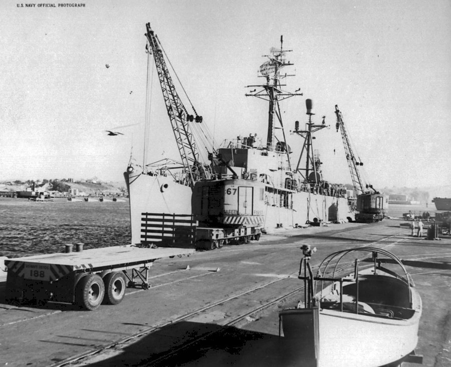 191k | 27 December 1956: Mare Island Naval Shipyard, Vallejo, Cal. - Broadside view of Durant off Mare Island. She was converted at the Naval Shipyard from 01 December 1955 to 31 January 1957. (U.S. Navy photo #DER 389 32616-12-) | ||