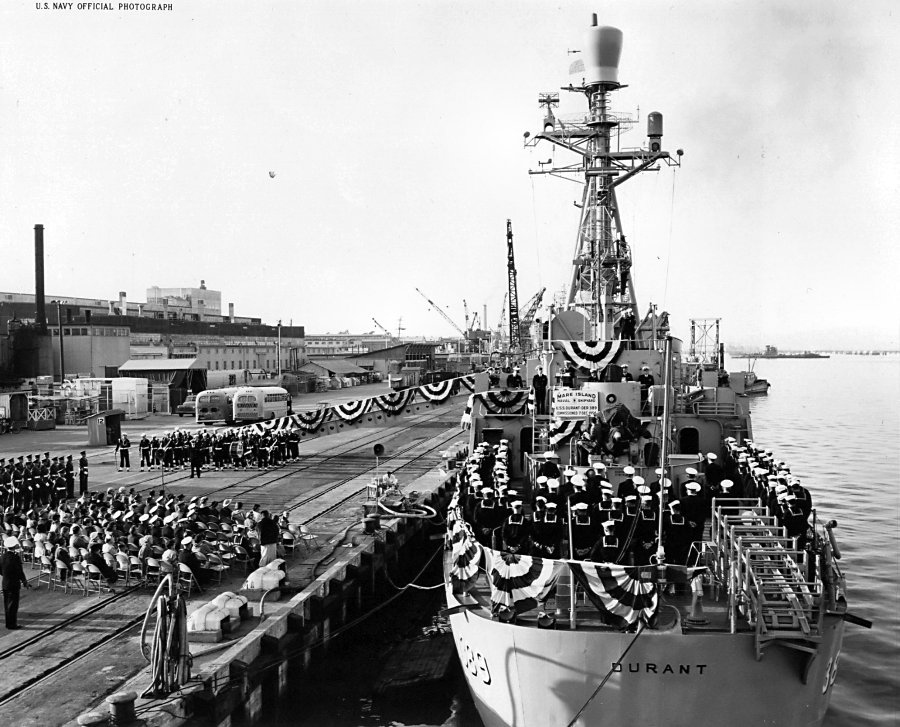150k | 07 December 1956: Mare Island Naval Shipyard, Vallejo, Cal. - Commissioning ceremonies aboard USS Durant (DER 389). (U.S. Navy photo #DER 389 32465-12-56) | ||