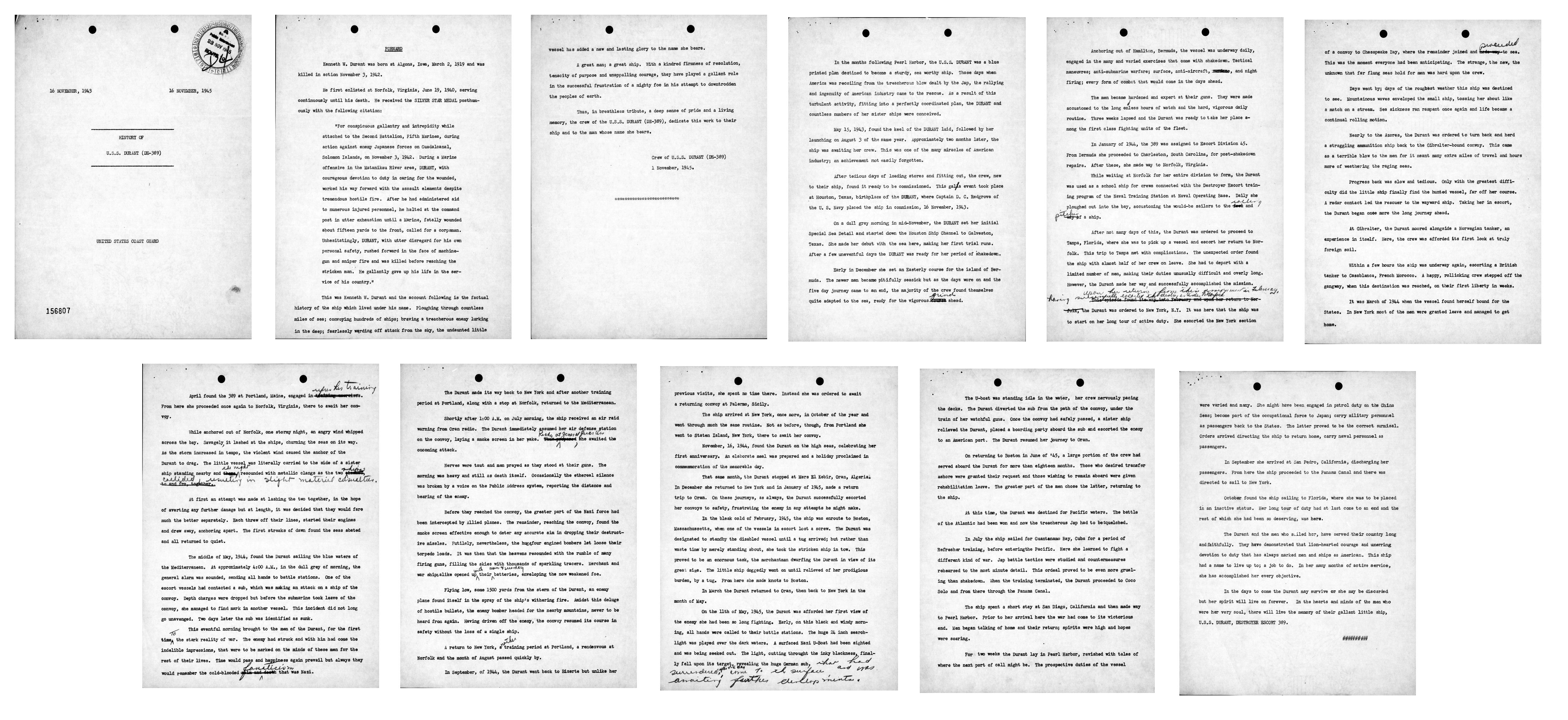 | View the official War History of USS Durant as submitted by the ship at war's end. |
