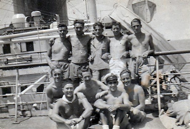 crew photo in dress blues, Glen's Dad, PO Jack Deasy, served aboard |
