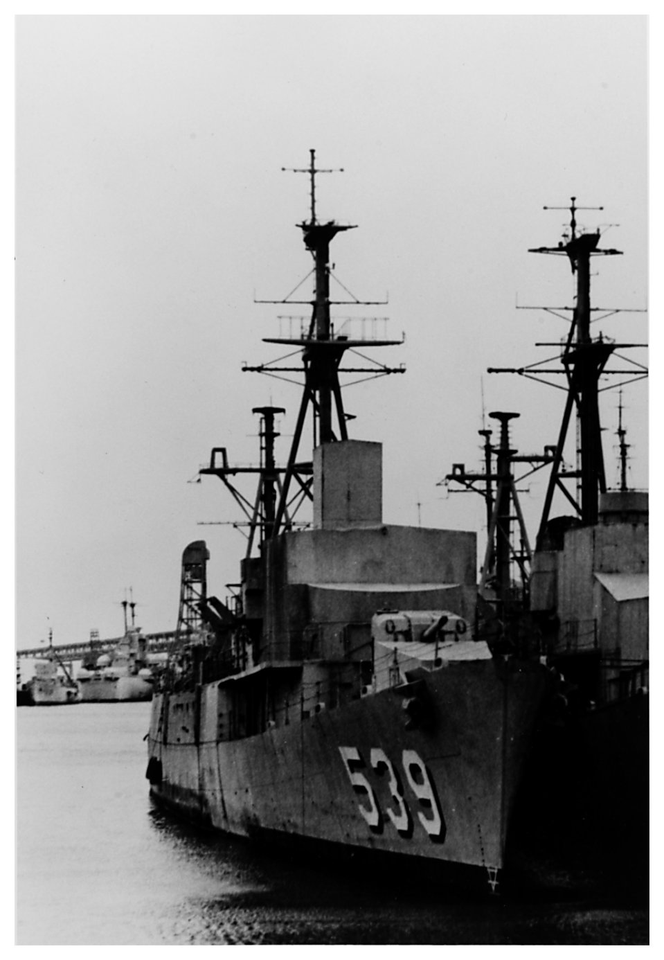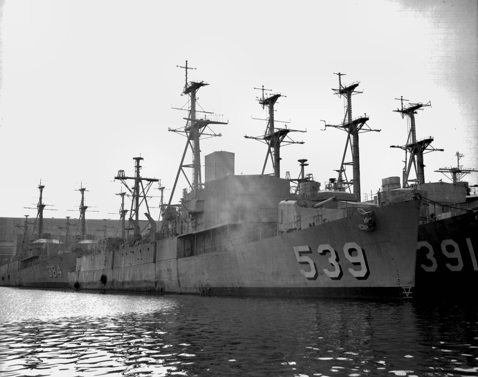 405k | October 1973: Philadelphia, Pa. - The decommissioned USS Wagner (DER 539), far left, nested in a group of mothballed destroyer escorts at the Inactive
