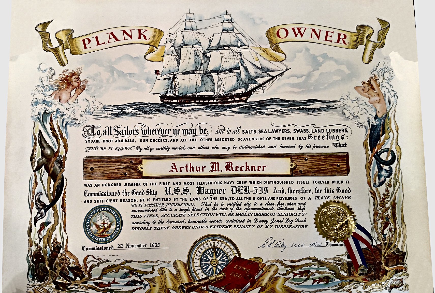 | Plankowner Certificate ![]() Courtesy of Marc Reckner |