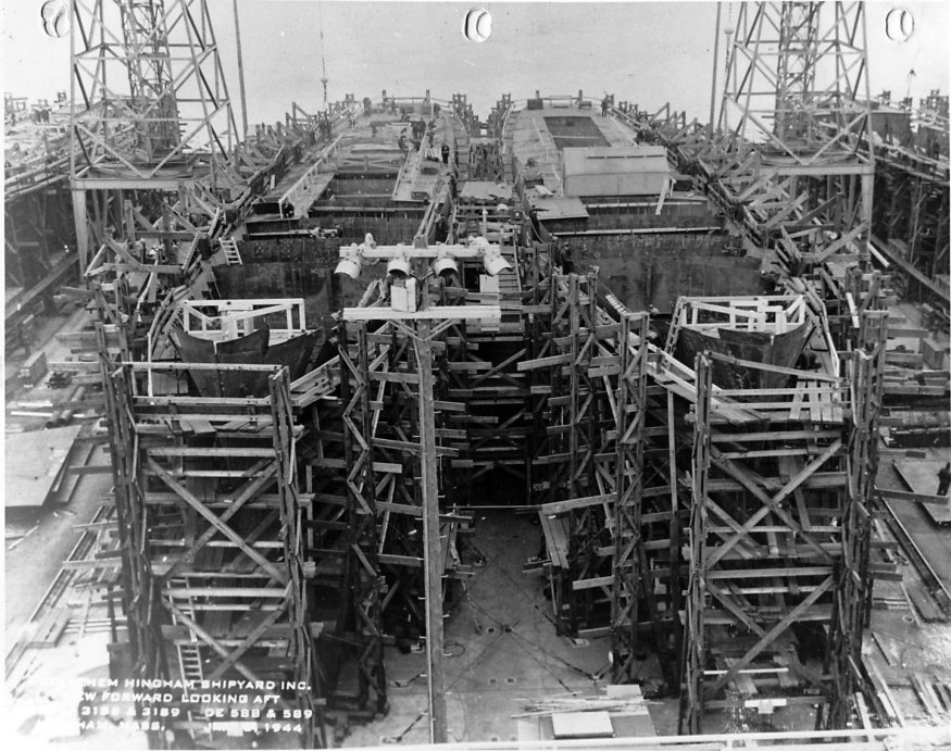 161k | January 1944: Hingham, Mass. - USS Peiffer (DE 588) and USS Tinsman (DE 589) on the building ways of Bethlehem Steel Shipyard | ||