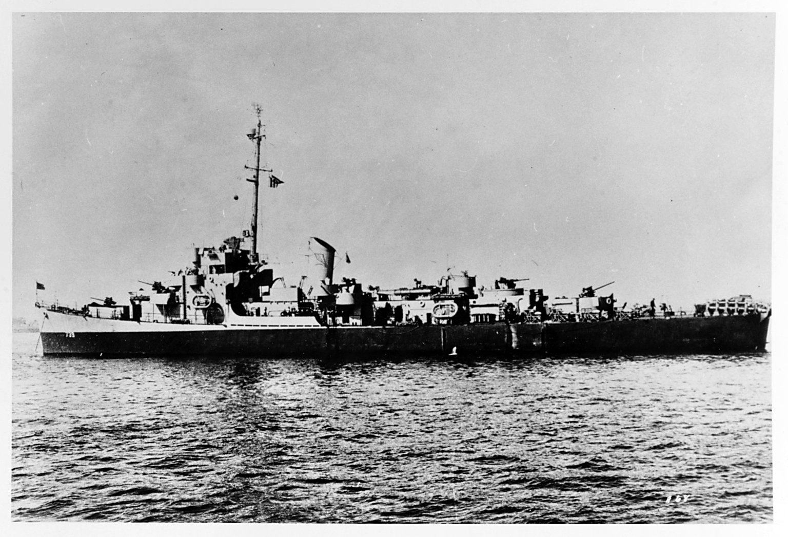 17k | The U.S. Navy destroyer escort USS Hilbert (DE-742) possibly at the Hunters Point Naval Shipyard, San Francisco, California, sometime between February and May 1944. She is painted in Camouflage Measure 31, Design 10D. U.S. Navy photo 19-LCM-DE742-1 | ||