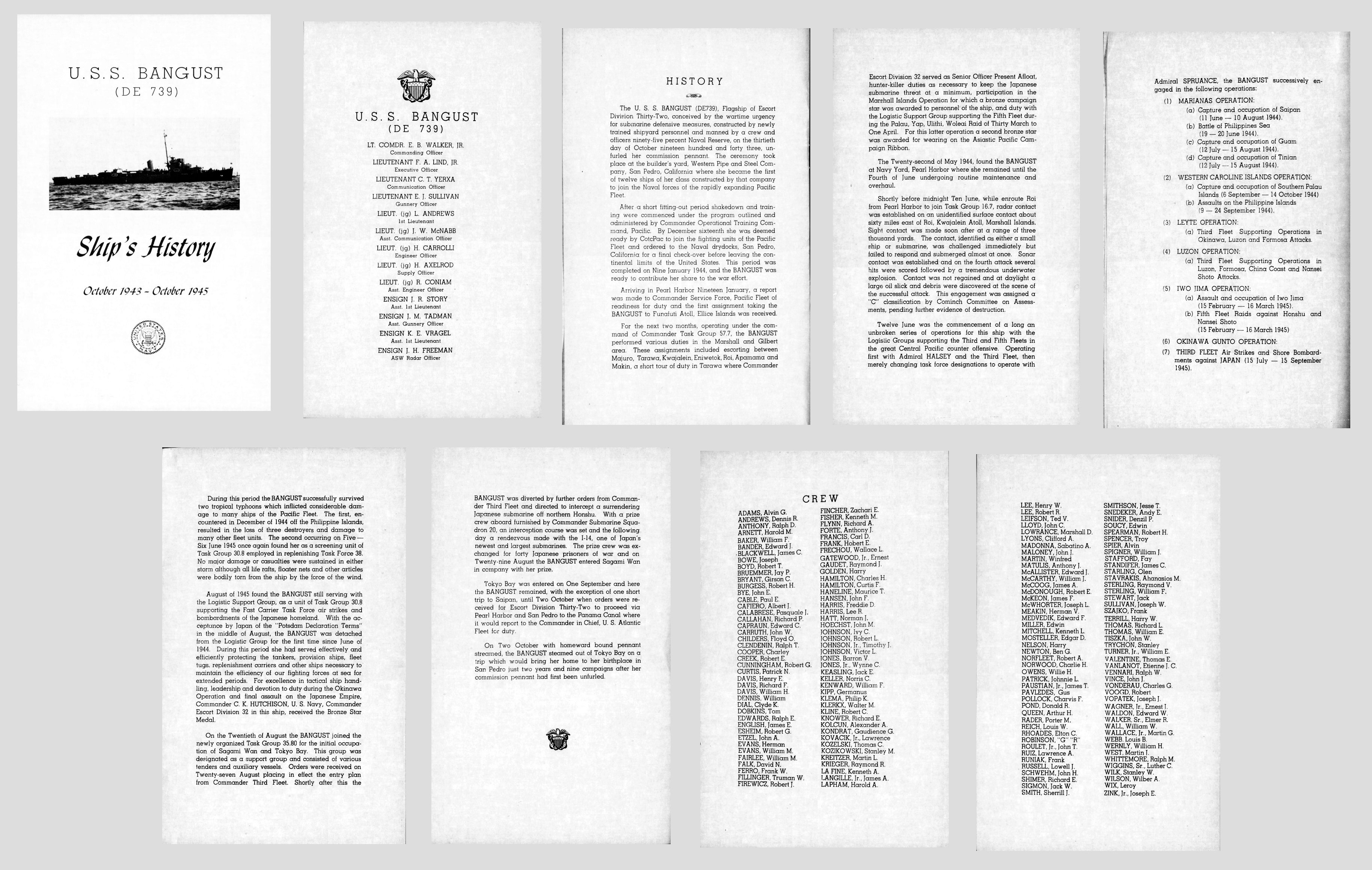 | View the official War History of USS Bangust as submitted by the ship at war's end. |