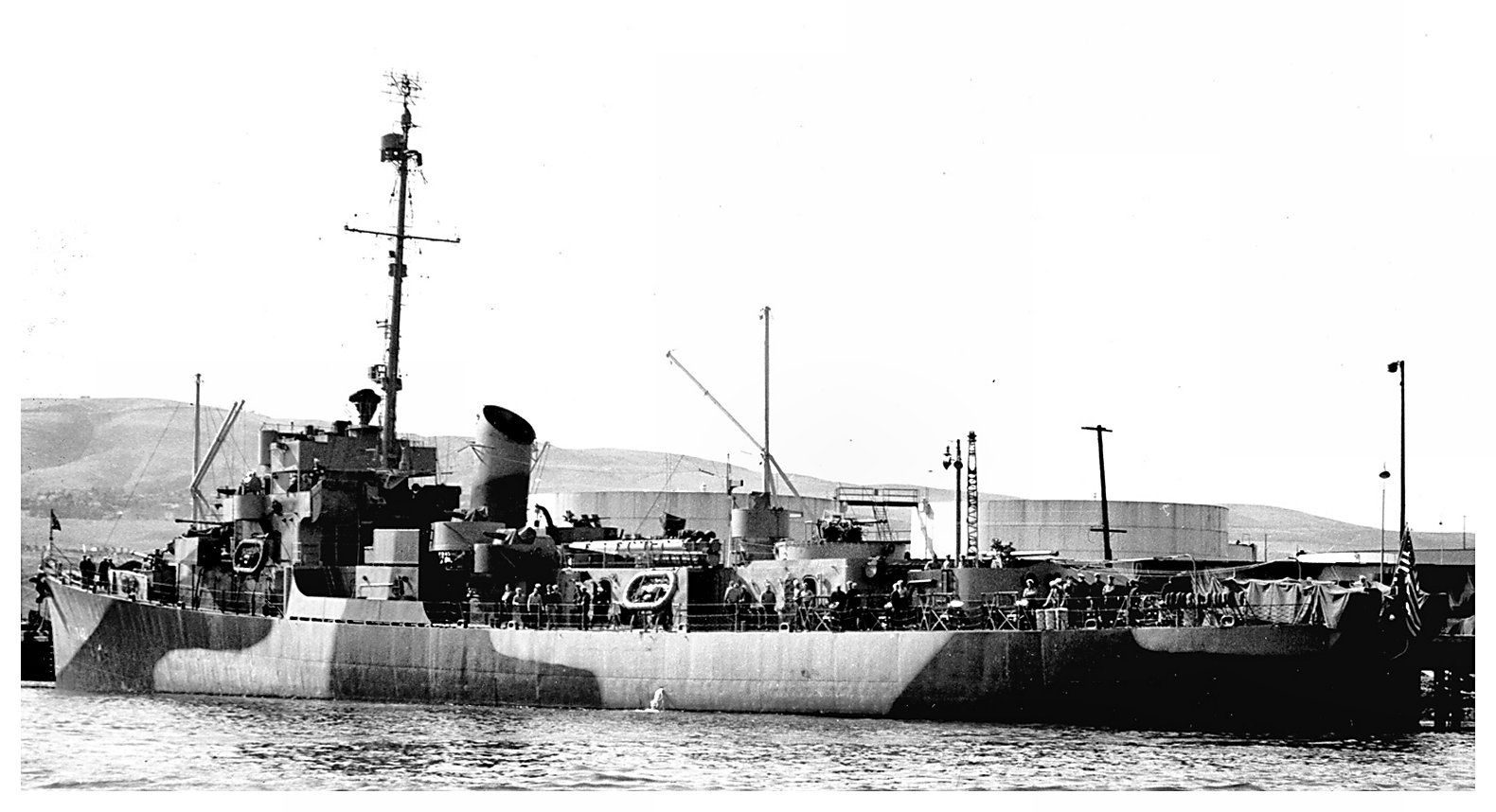 188k | May 1944: The U.S. Navy destroyer escort USS Hilbert (DE 742), more than likely at the Naval Operating Base at Terminal Island, San Pedro, Cal., where she spent
