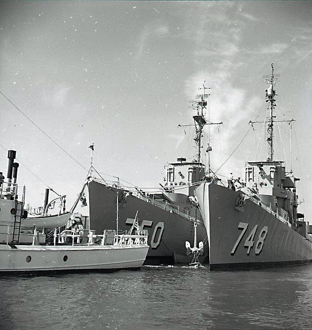 101k | early 1960: Gloucester, Mass. - Two reserve training vessels on a port visit to Gloucester. USS Tills (DE 748), homeported at Portland, Maine is moored outboard of McClelland, homeported at Philadelphia, Pennsylvania. | Tommy Trampp Benton City, Wash. | |