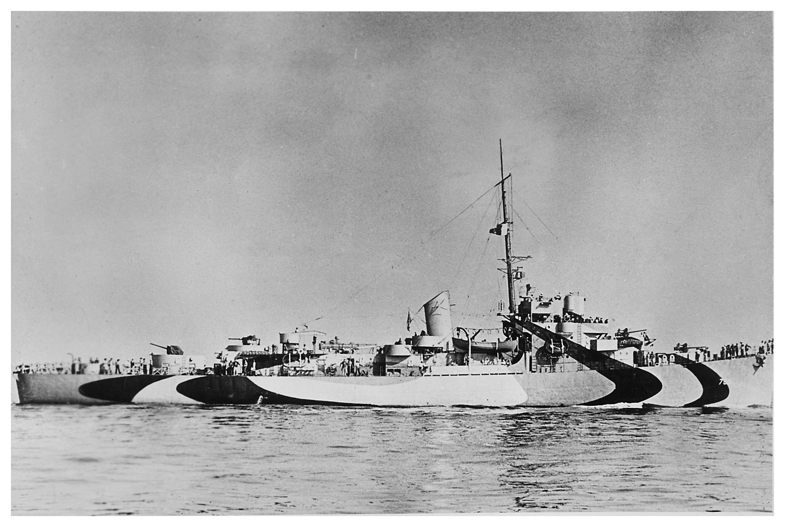for the DE-51 class). See Photo # 80-G-105513 for a plan of the latter design for the starboard side and decks, and Photo # 80-G-105512 for its port side design. (U.S. Naval Historical Center photo #NH 107523 from the Naval History and Heritage Command) |