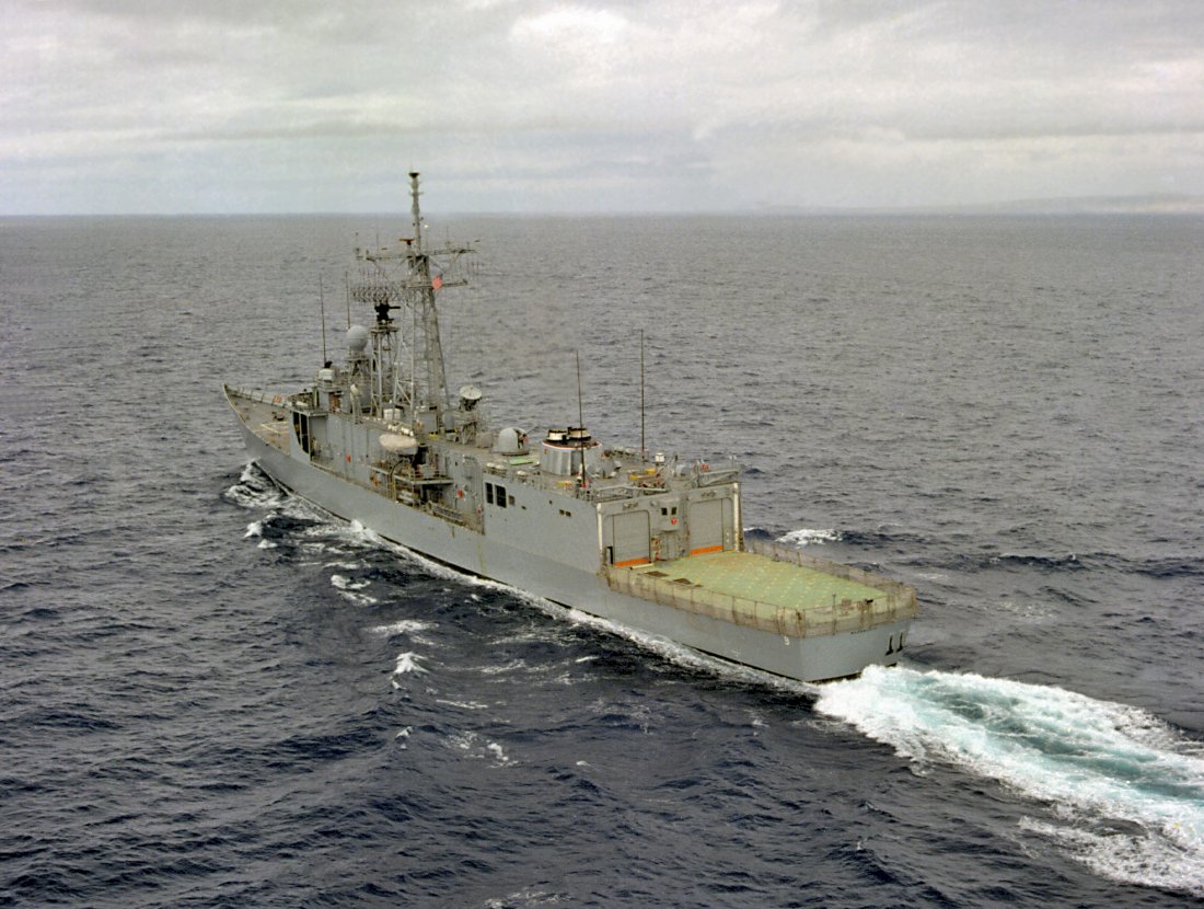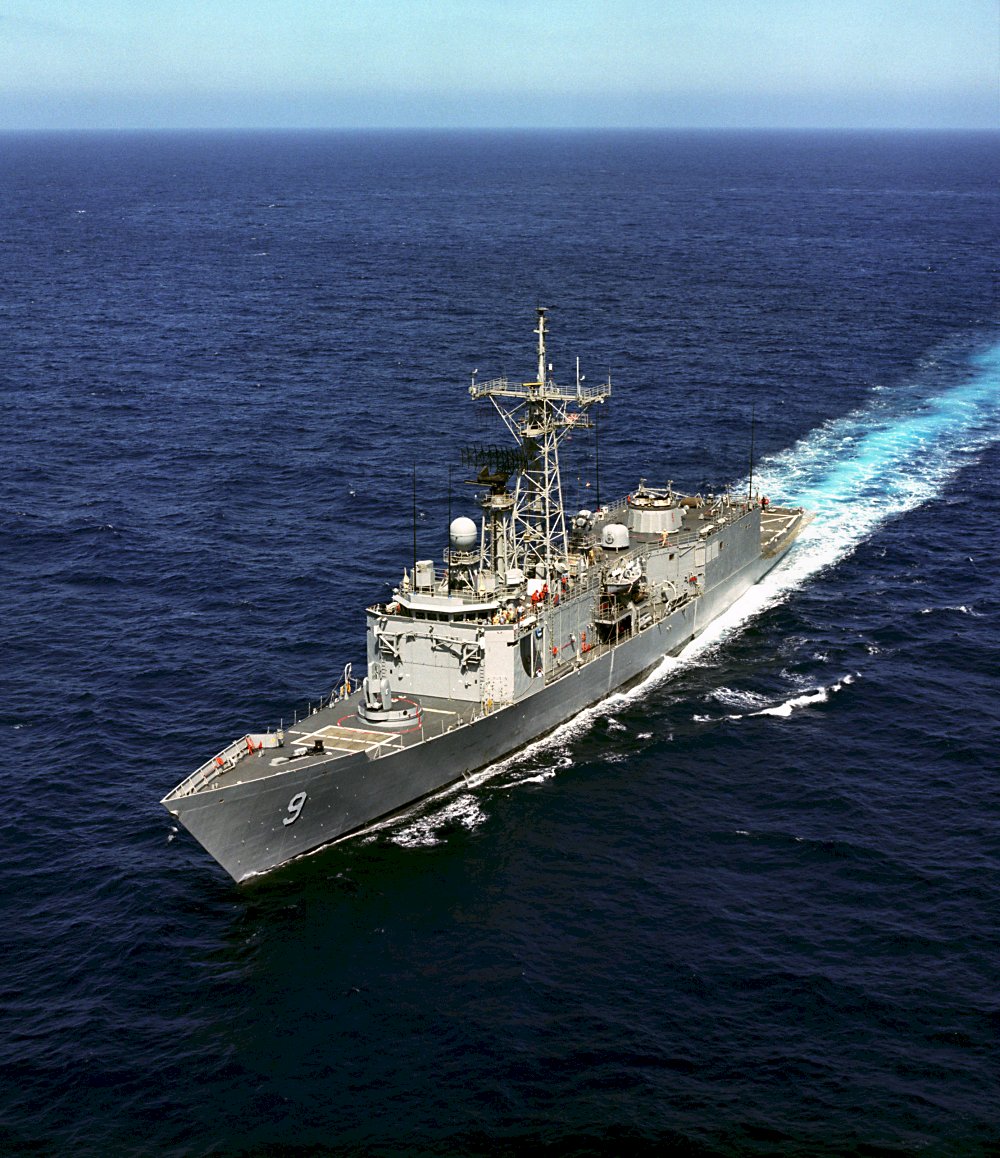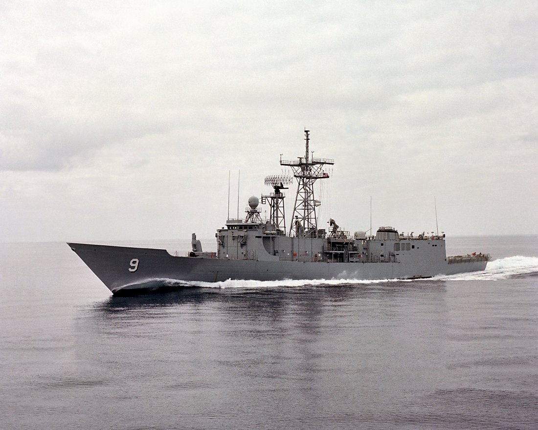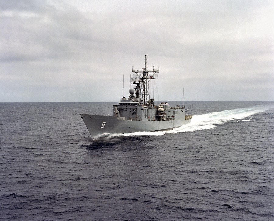 171k | 10 January 1981: at sea - Aerial port view of the guided missile frigate USS Wadsworth (FFG 9) underway. (U.S. Navy photo DVID #DN-SC-83-11901 by Don S. Montgomery, USN [ret.], from the Defense Visual Information Center) |